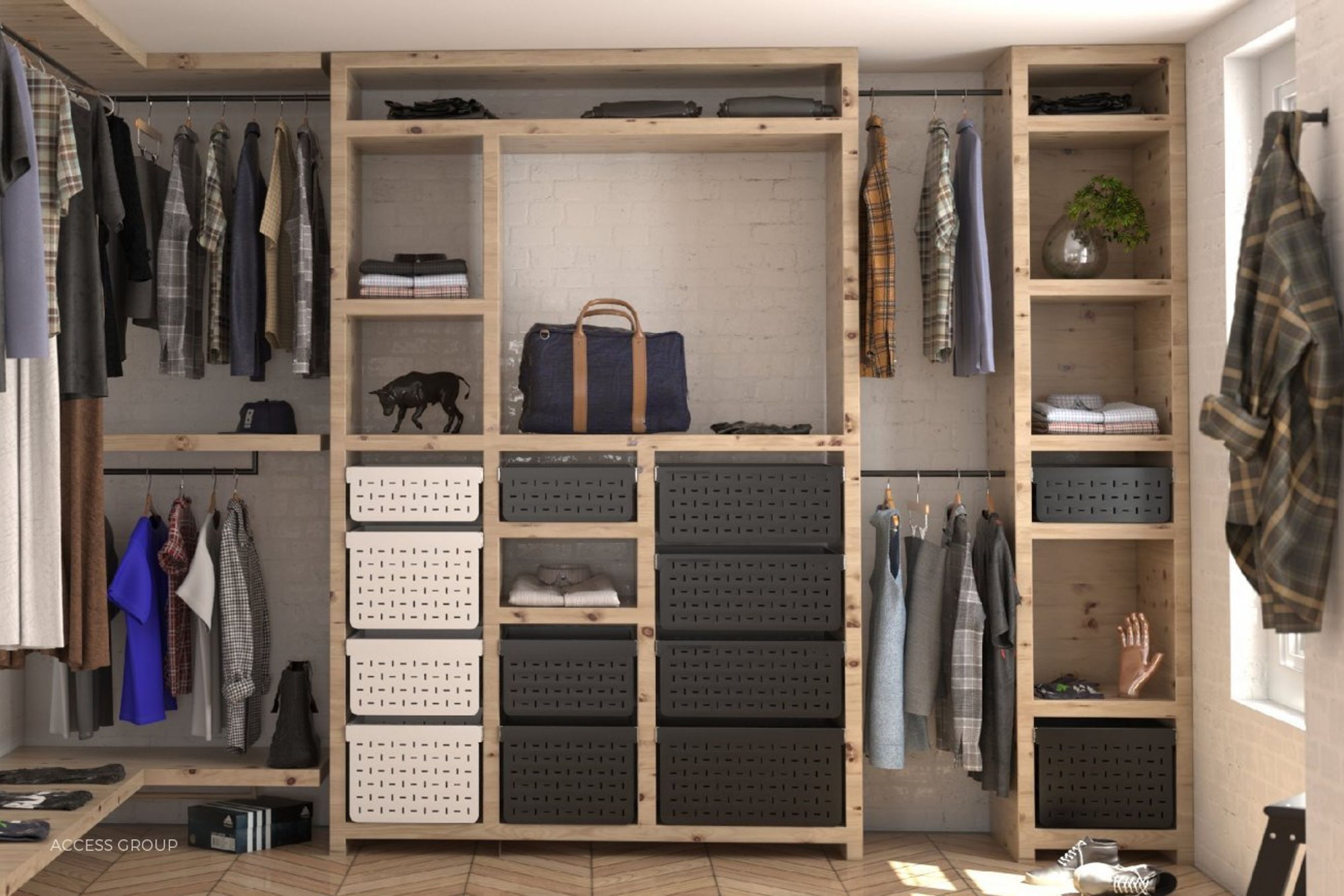 The ventilated drawers are made with powder coated steel, and have a solid base. The frontages incorporate a clean design with a mix of vertical and horizontal perforations that allow for ventilation within the drawer and are a nod to the traditional wicker basket. “This prevents food from going off and keeps fruit and vegetables fresh for longer because of the air circulation. When used in wardrobe solutions, it allows, again, for air to circulate and prevents clothes and other items becoming musty because they are able to breathe.”