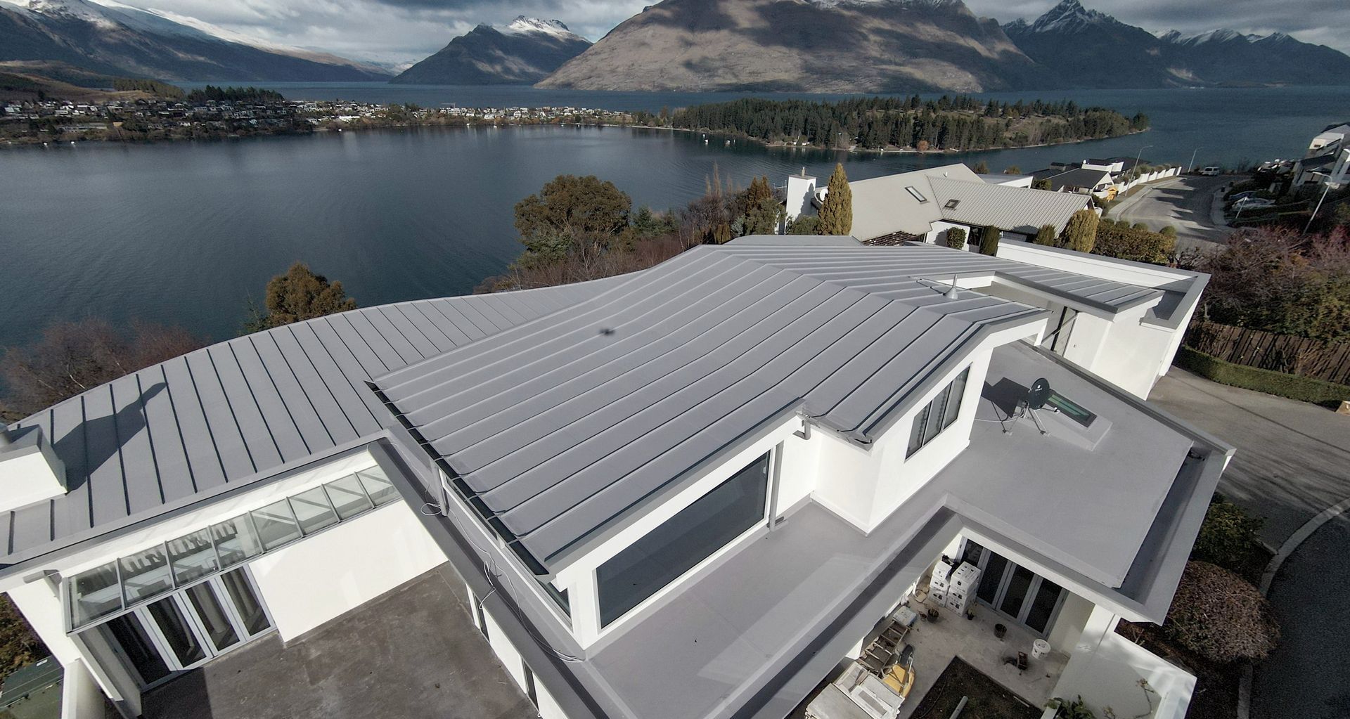 A classic example is a recently completed project on the edge of Queenstown’s beautiful lake Wakatipu. This project was a refurbishment, where the old steel roof (visible from the ground) had been poorly installed; had rusted and was leaking. The new owners took the opportunity to replace the roof With Viking Enviroclad, and with that, made the decision to install matching TPO-weldable ribs to create a modern wide-trough steel tray look, but without the worry of potential premature corrosion.