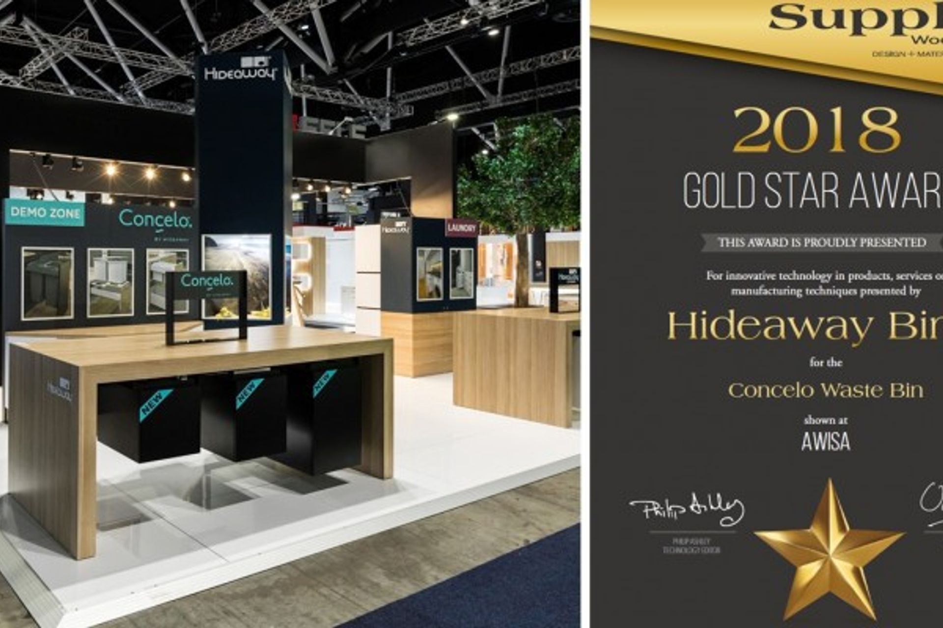 Of the 6 Gold Stars awarded following AWISA, Concelo was the only hardware product to receive the award. As a New Zealand family owned business, being judged alongside the best international hardware brands and receiving this award is a huge accomplishment for the team at Hideaway Bins. It recognizes the level of innovation that has been developed and engineered into the new Concelo range.