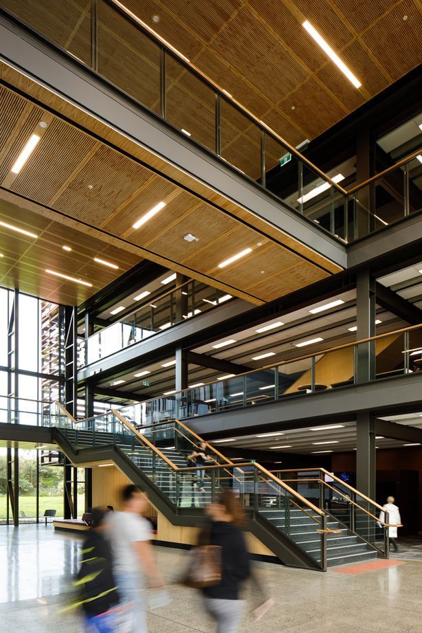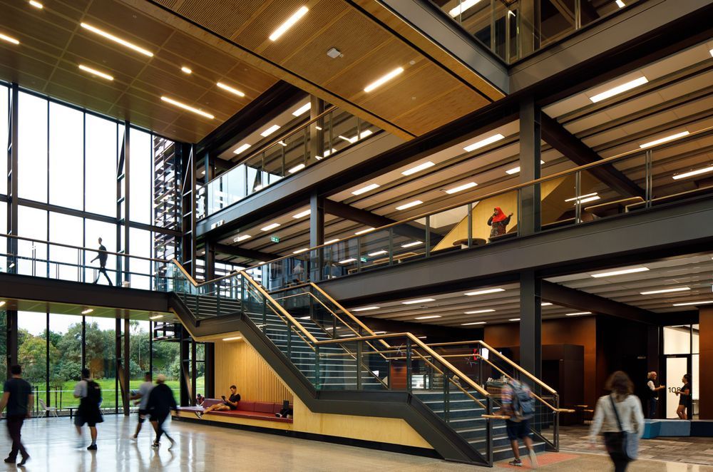 Décortech panels were specified on the new AUT M1 building. Two panel types with three different finishes were specified, including a customised Dark Stain. With the intricate curved design in the Crush Space, Décortech worked with the installer with templates of the design. These templates meant once Décortech manufactured the panels they were able to be delivered to site on time, and the panels were installed without hassle or worry of them not fitting.