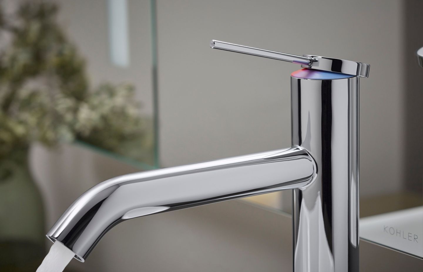 “When you lift the handle to operate the single Lever basin faucet, for example, it in fact doesn’t move up and down as a traditional handle does. Instead, it glides side to side in a disc-like rotation to control the heat of the water. When the handle is lifted to turn the water on - a coloured laser etching becomes visible to indicate temperature levels.”