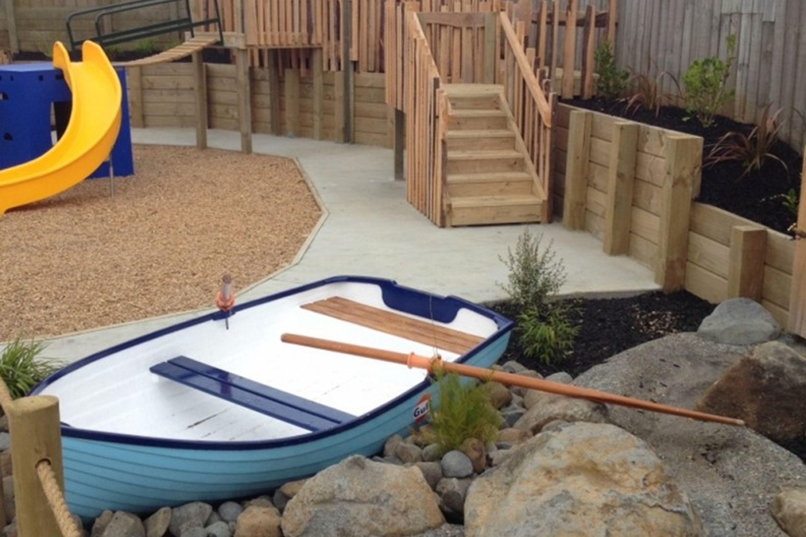 This inspired the playground design resulting in the hallmarks of this site including a humpback whale's tail emerging from the sand pit, a 'waka' play zone, a thatched hut 'fale', marae-shaped shelters and a seashell doorway to the fence.