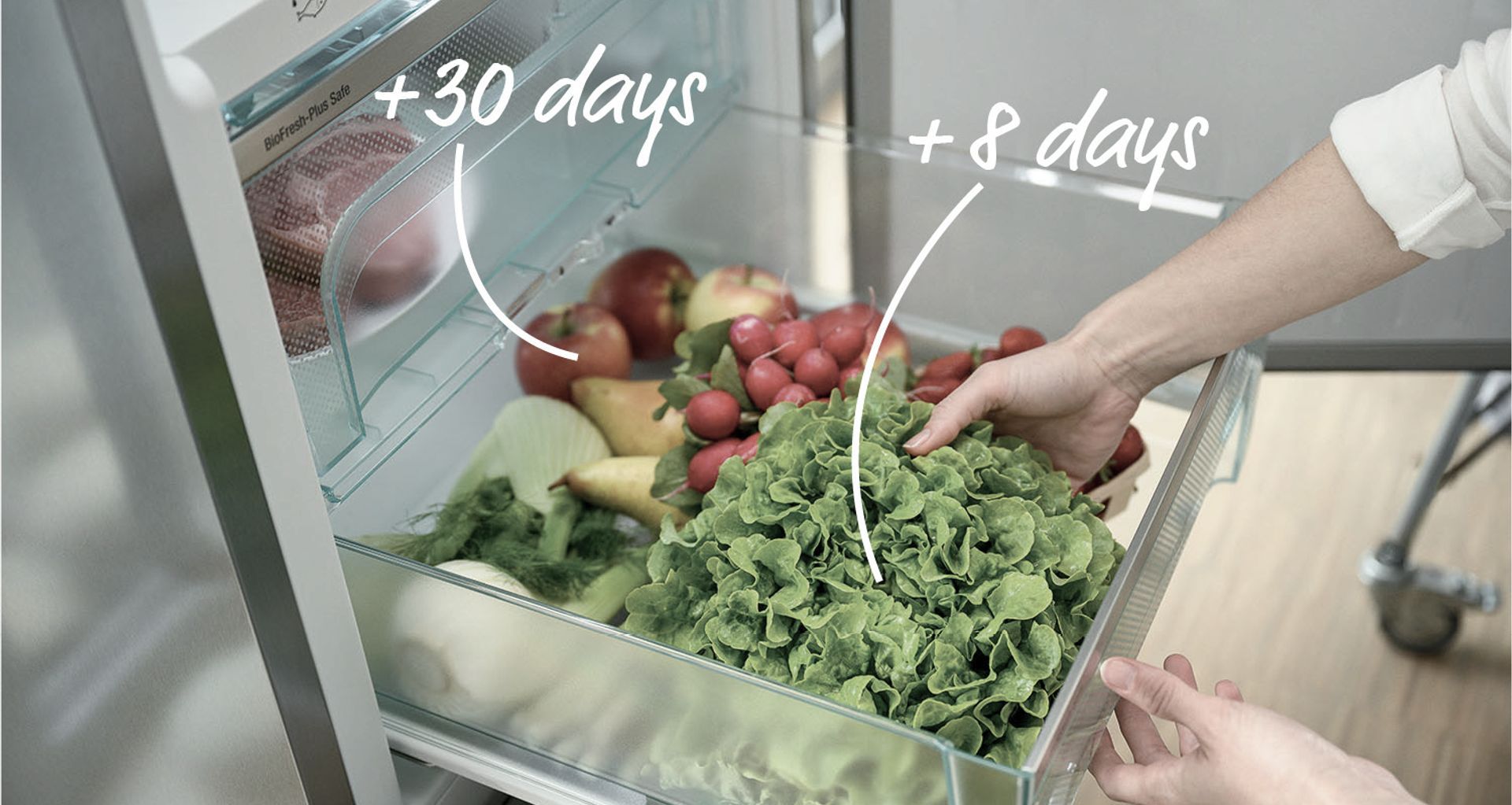 By using our BioFresh storage drawers which are set at just above zero degrees then selecting the appropriate low or high humidity setting the Ethylene producing gas is dramatically slowed. This process will increase your food shelf life significantly longer whilst still maintaining the original level of moisture. It will keep the colour and snap in your fruit and veggies longer whilst still maintaining your dairy, meats and seafood as pristine as the day it was purchased. However as advanced as the Liebherr BioFesh technology is make no mistake that Ethylene will be the eventual winner but with a bit of good planning your food would have been consumed and enjoyed by all well before it can no longer be enjoyed.