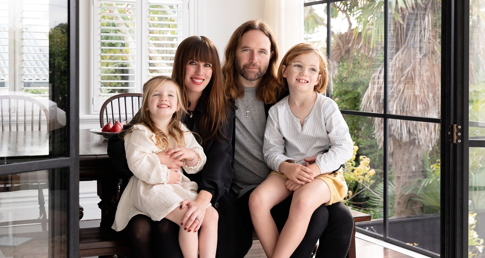 Spanning the length of the dining and kitchen area, the glazing certainly captures the outlook towards Mount Victoria. It also means a watchful eye can be kept on the children – Wilder and Romy – as they explore the backyard.