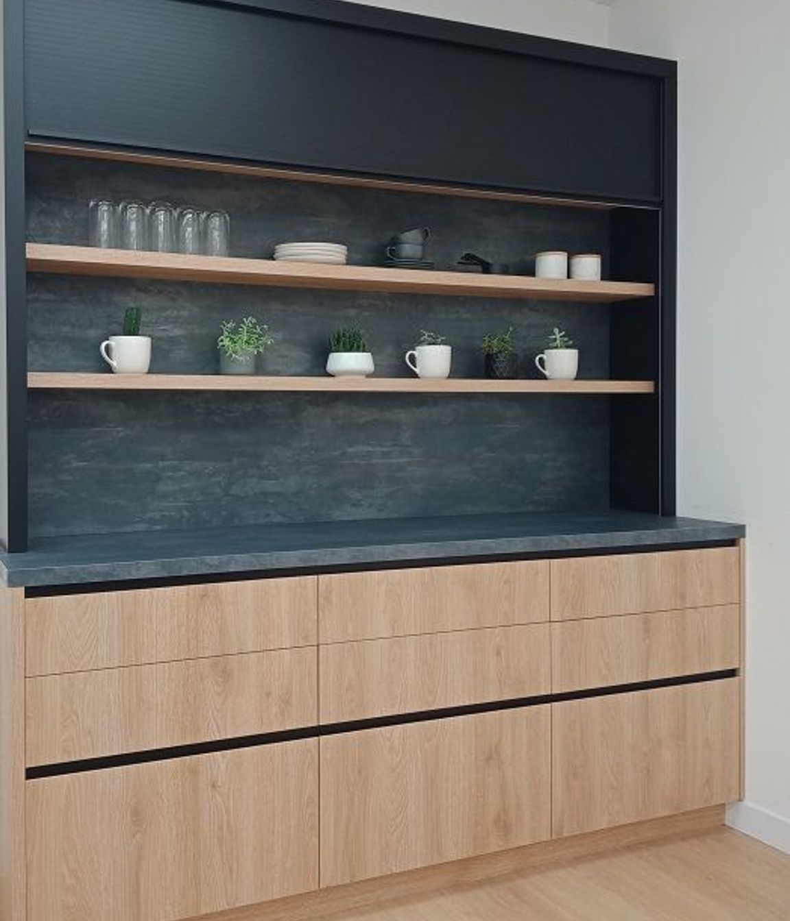 Hyper realistic wood grain melamine cabinetry