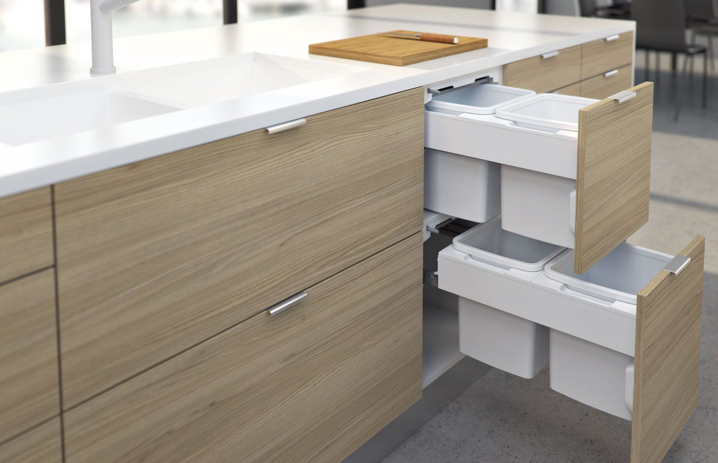 Concelo bins run on smooth synchronised runners that include a fluid damper for a seamless closing action. Like all Hideaway Bins, the runners over-extend to ensure the back bucket will come clear of the bench top.