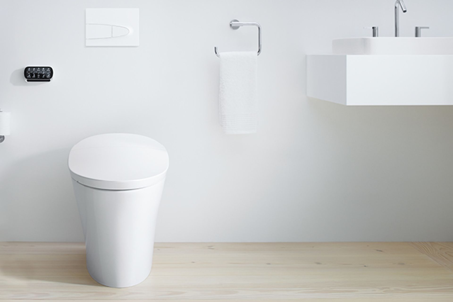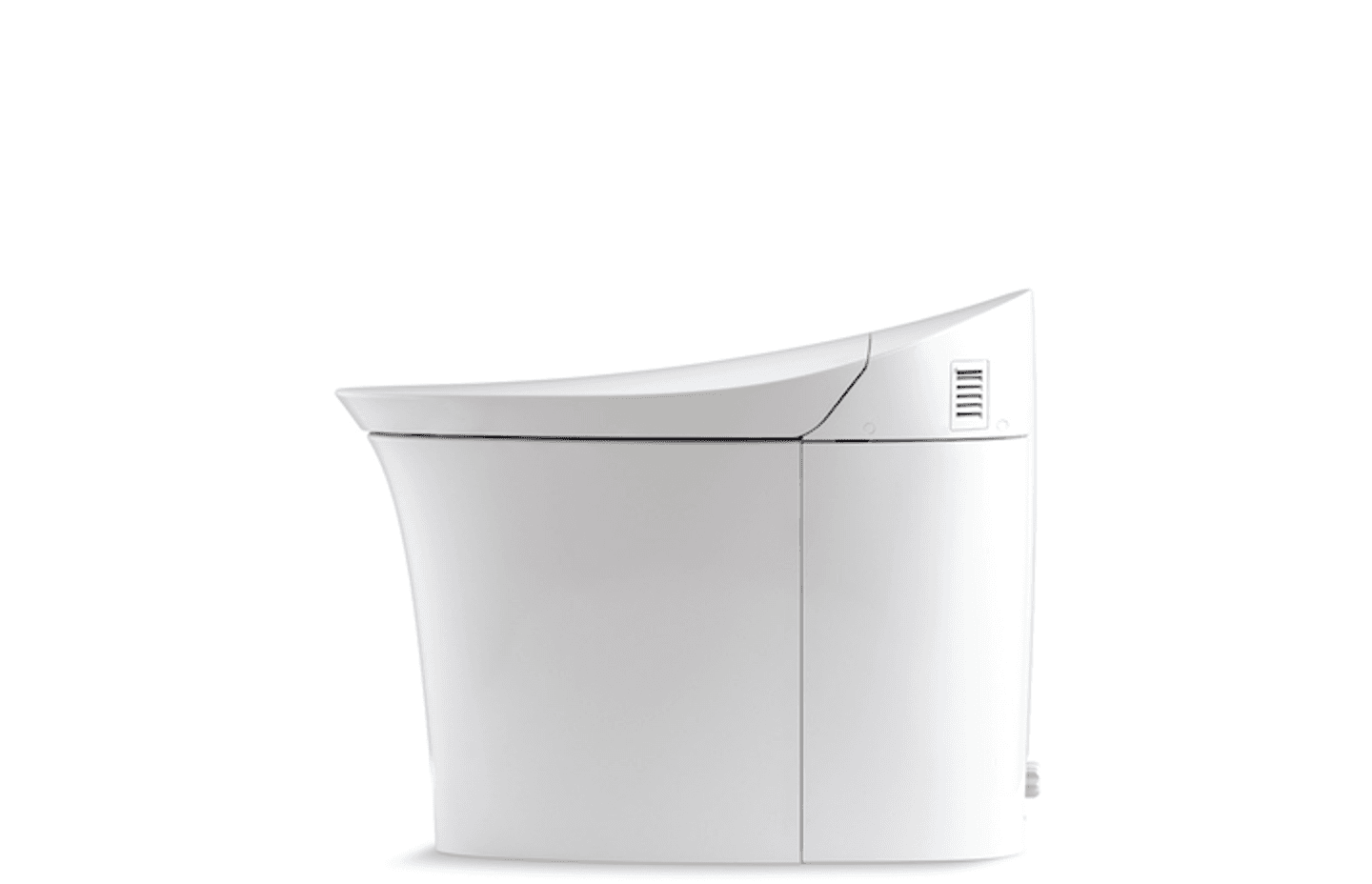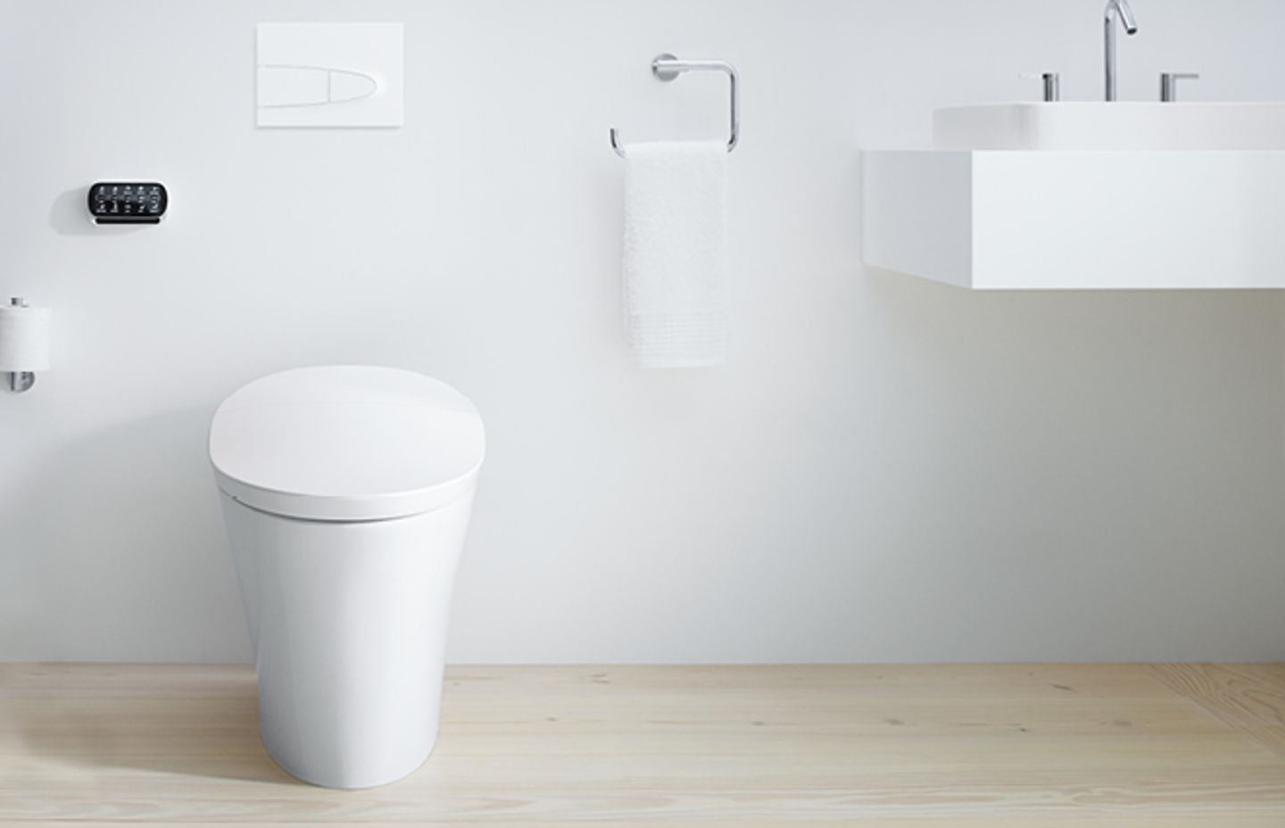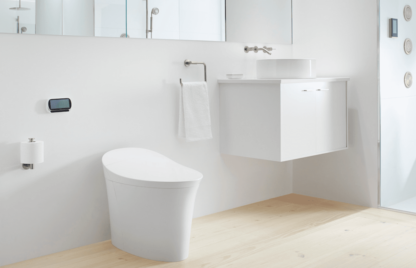 The Veil wall faced intelligent toilet, by Kohler, is a compact, one-piece toilet with elongated bowl for added room and comfort. It features an in-wall fully concealed cistern with a 3/4.5L flush. The Veil is also available in a wall hung configuration.