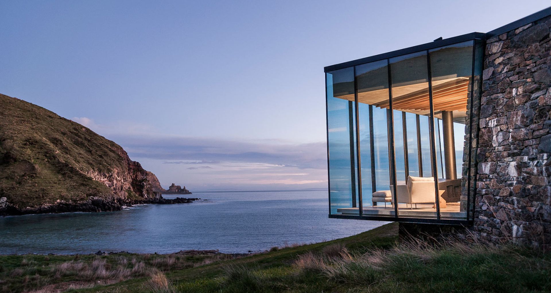 This is no quaint cottage, but instead an ultra-modern, open-plan ‘shelter’ that consists of only three rooms. Seascape is built using local materials, including rock quarried near the site, and features a turf roof and in-situ poured concrete flooring. A sunken spa provides the perfect outdoor spot to enjoy a glass of bubbles.
