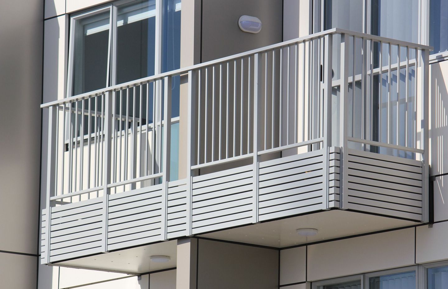 The main deck balustrade would be Provista’s ‘Villa’ aluminium baluster style solution, powder-coated in Silver Pearl finish to match other finishes on the building. The handrail used throughout was the ‘Retro’ rectangular profile being an ideal shape to match the form of Provista’s Post, Euro Slat, and Baluster profiles. The upper decks featured face-fixed posts with completely hidden fixings.