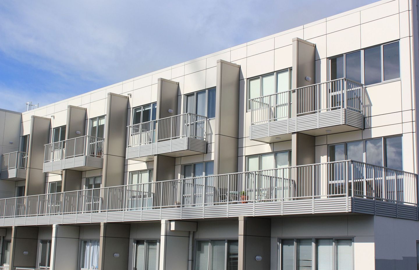 The new, re-clad exterior of the Ascent Apartments provides a fantastic, fresh and modern look to the building, the balustrade and screening complimenting the overall look and design.
