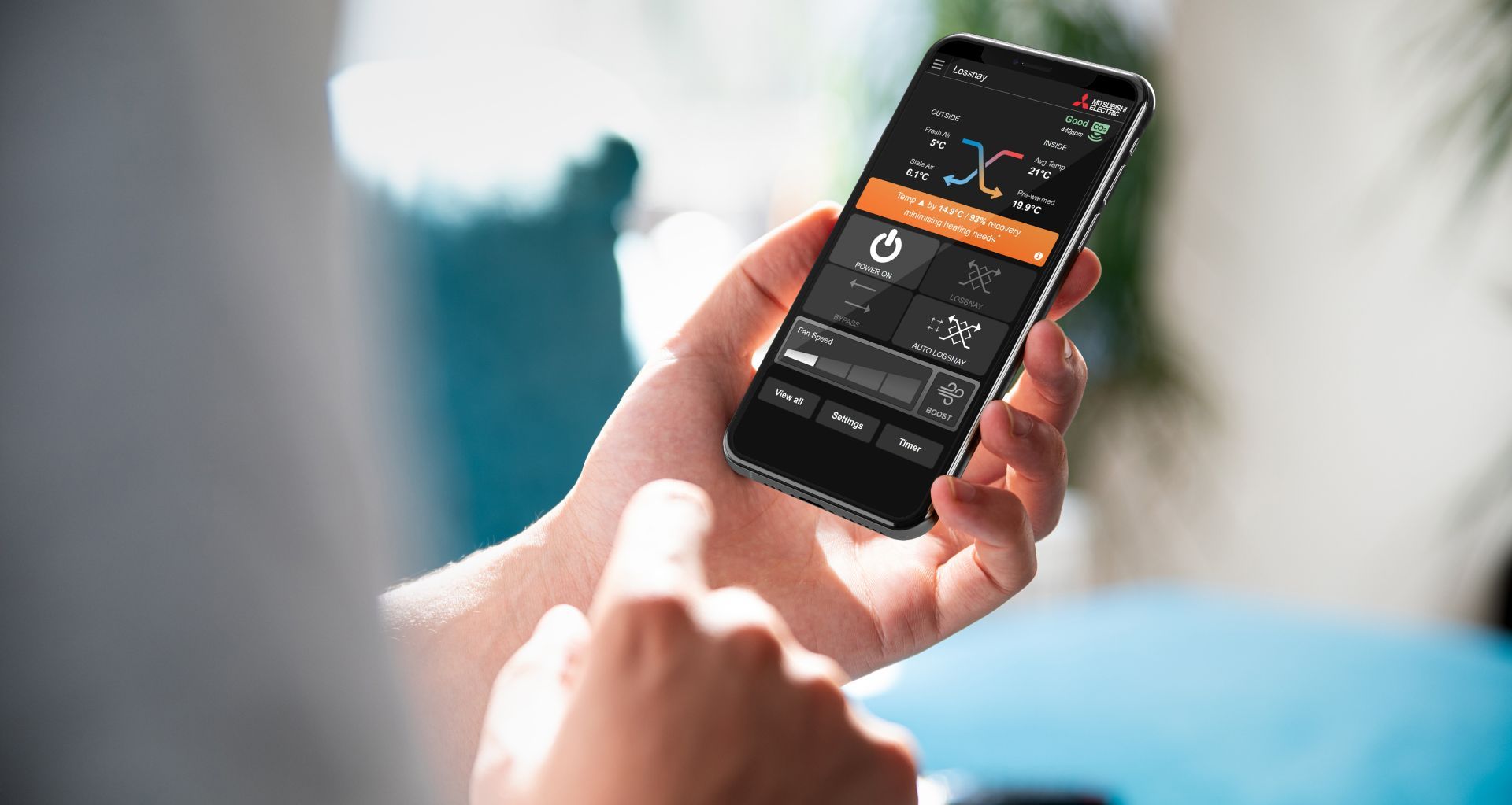 The Lossnay Wi-Fi Control App allows homeowners to monitor and manage air quality in real-time — from anywhere.