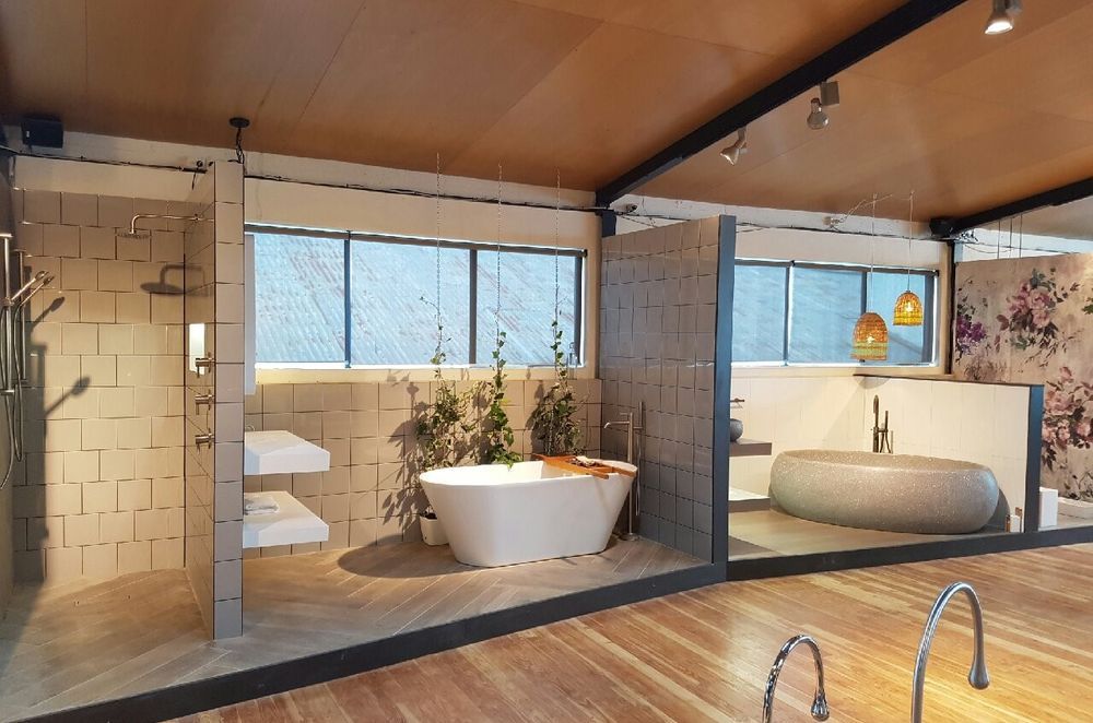 The image that generally comes to mind when you think of a bathroom showroom are rows of tapware, toilets, vanities and the like.