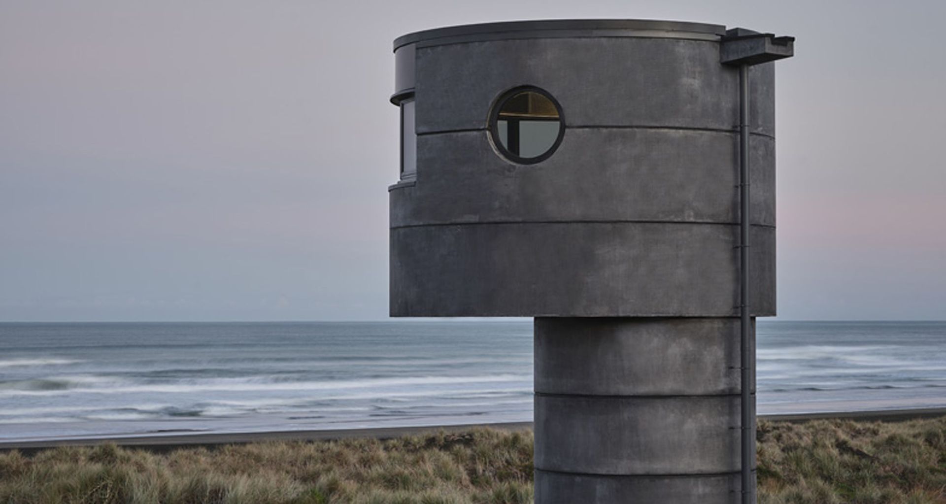 There's a new surf life-saving tower on North Piha Beach. It's circular, sculptural, made almost entirely of concrete, and coloured with PeterFell's 699 SuperBlack oxide — a shade that speaks to the famously dark and rugged West Coast.