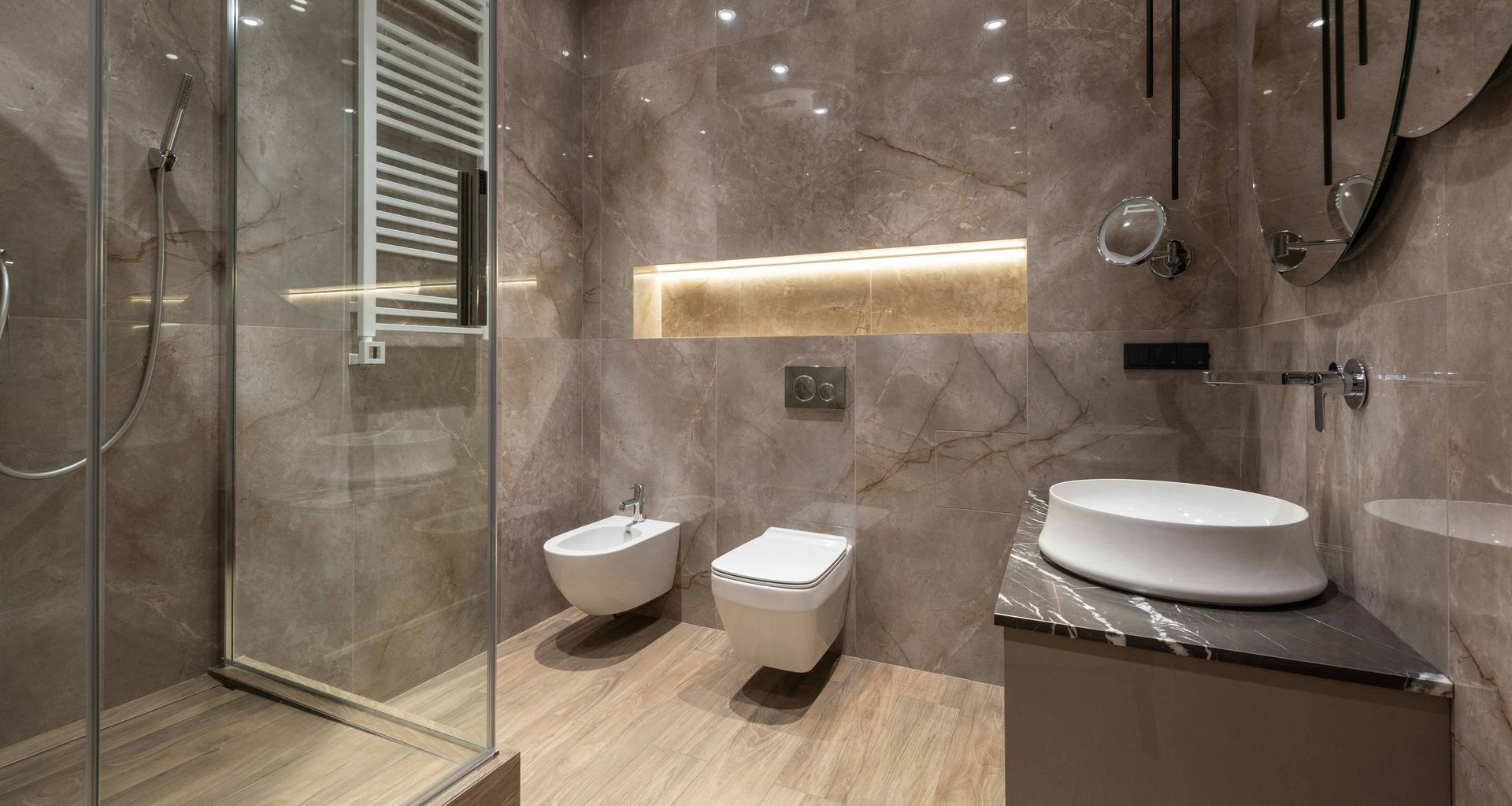 Subway tiles, with their classic rectangular shape, offer a timeless aesthetic that suits both traditional and modern spaces. Their minimalist design allows them to adapt to various décor styles, and they can be arranged in different patterns to fit specific styles and spaces. However, if not applied correctly, they risk leaving the space with a less polished appearance – something architects and interior designers are skilled at avoiding. Large format tiles are perfect for creating a sleek, seamless look, especially in modern or minimalist designs where fewer grout lines are desired.