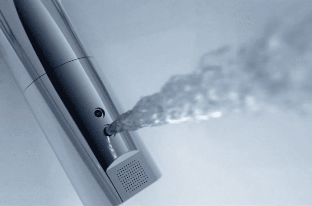 Once a user is finished, they can select which wash and dry cycle they wish by touching the smartpad linked to the bidet by bluetooth and located on the wall within arm’s reach. At this stage, a stainless steel wand emerges from the back of the bowl, concealed beneath a discrete flap, which will wash with warm water according the user’s preference. The wand will then retract and a blow dry cycle can be chosen.
