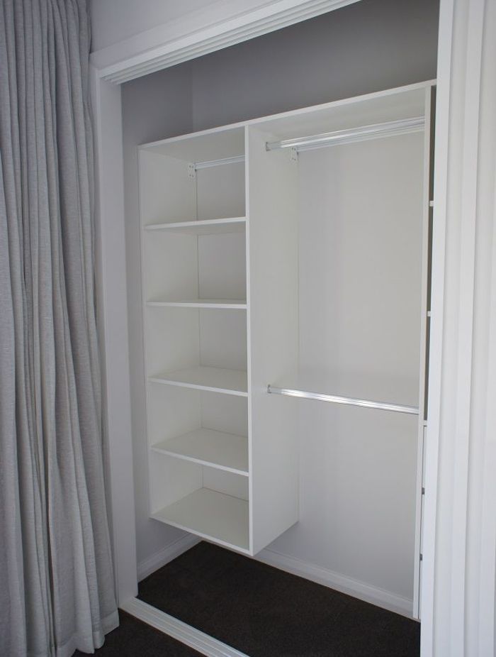 In terms of wardrobes, that means maximising space and incorporating various elements. “Having short hang options that stack on top of one another is one really effective way to maximise space as you are effectively creating twice as much hanging space in the same area which then allows more room in the wardrobe to incorporate other things like open shelving, for example,” Melanie says. “Open shelving in wardrobes is a cost effective option and great for reach in wardrobes where everything is behind doors.”