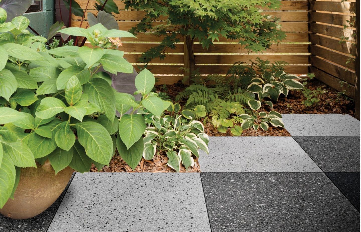 While pavers are a feature in themselves, paving is something that should always complement the overall landscape design. One benefit of using locally made pavers like those of the Firth Designer Range, is the knowledge that they will always easily complement other features because they are local. “The pavers are all New Zealand made and are inspired by the New Zealand landscape and the natural environment around us,” Cumming says. “That’s why they always work well with other landscaping elements, especially if they are also local to an area.” The locality of the aggregates is amplified with the terrazzo finish, which exposes the stone within each paver.