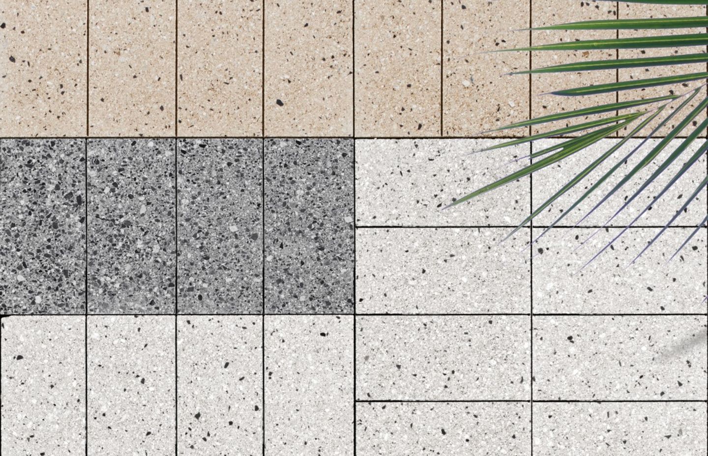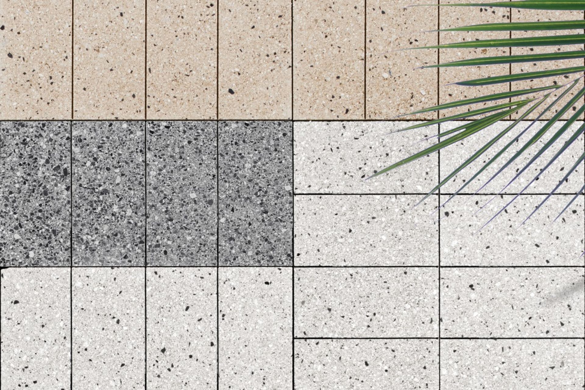 the door for clients to create a terrazzo feel. Because the traditional edges are taken off in the honing process, these pavers have straight, clean edges so have the advantage of a tile-look. This means people can achieve a really upmarket look using pavers that could only otherwise be created by using tiles.”