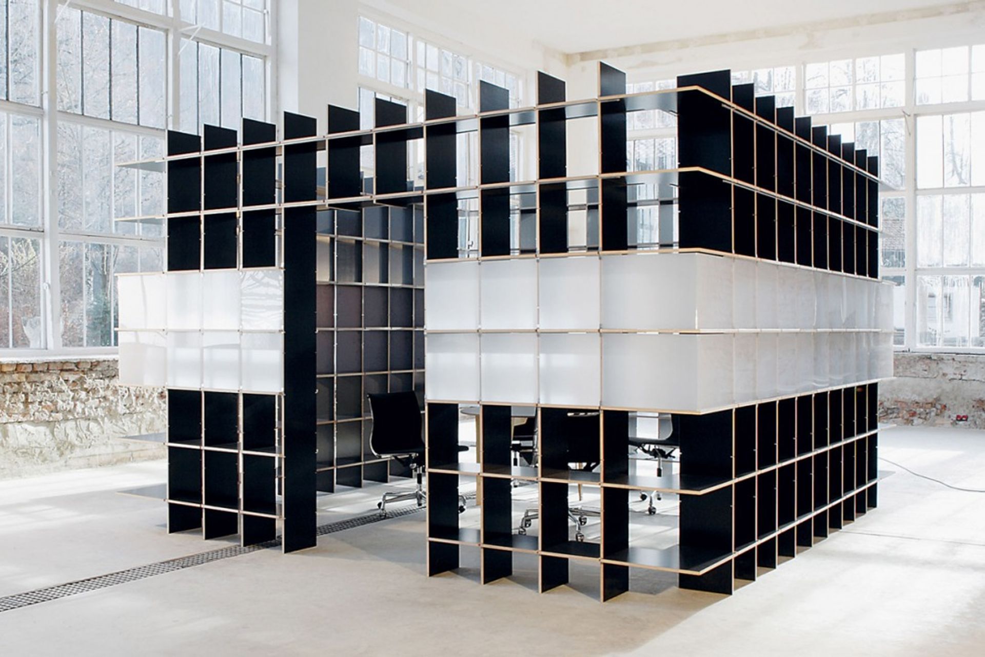 In more creative configurations, the FNP has been used to create a room within a room, most notably in office spaces where it acts as a divider of space as well as a shelving solution.