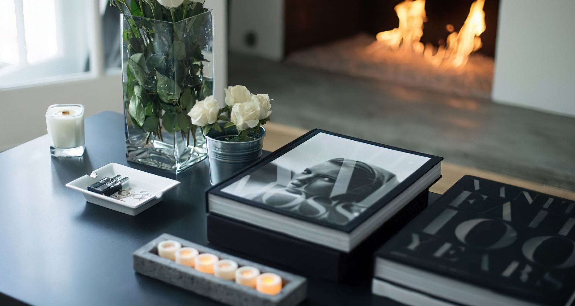 Achieving balance and symmetry in your coffee table styling can create a harmonious and pleasing visual effect. Start by arranging items in pairs or sets, such as matching candles, vases, or small sculptures. this creates a sense of equilibrium and orderliness.