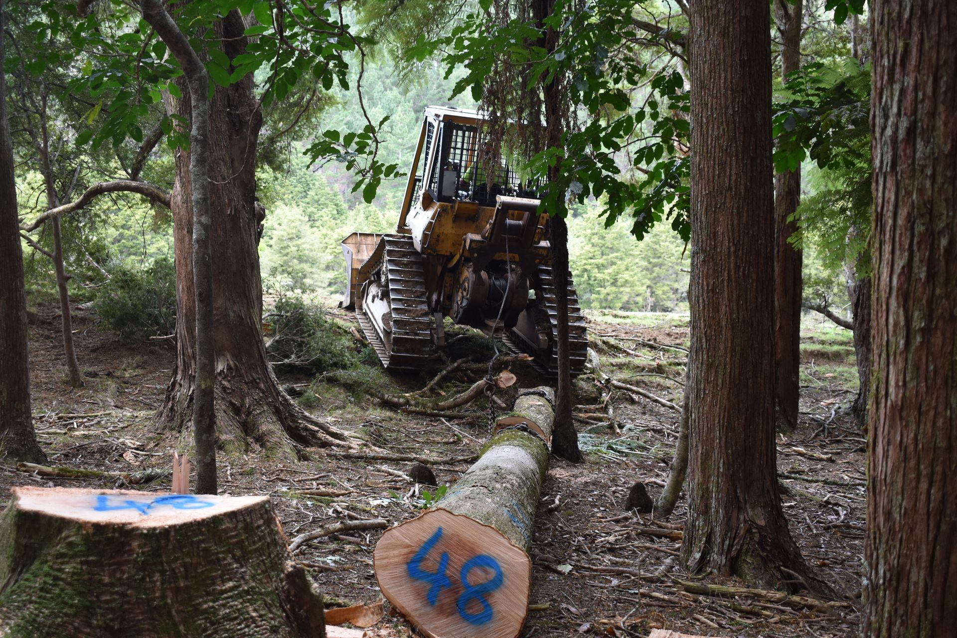 Careful directional-felling avoids damage to the remaining trees. Harvesting targets poorer trees and leaves the best trees standing to grow on for the future. The volume removed is less than the growth-rate of the forest. A healthy forest structure is maintained by careful tree-selection and low-impact harvesting. The average age of the harvested trees is 85 years, but they range between 50 and 150 years old.