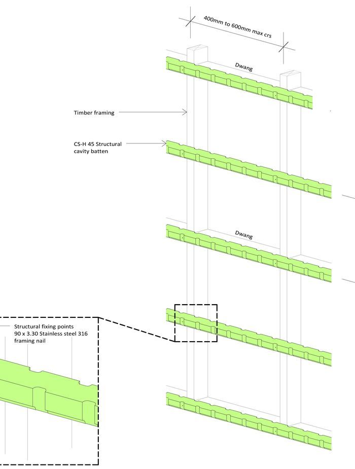 Within the Building Code there is no provision for use of a horizontal cavity batten because of the risk of moisture getting trapped behind the cladding and having no point of egress. Over the past 15 years, this restriction has led to the development and testing of cavity systems to overcome this limitation and meet the ever increasing demand for this cladding type.