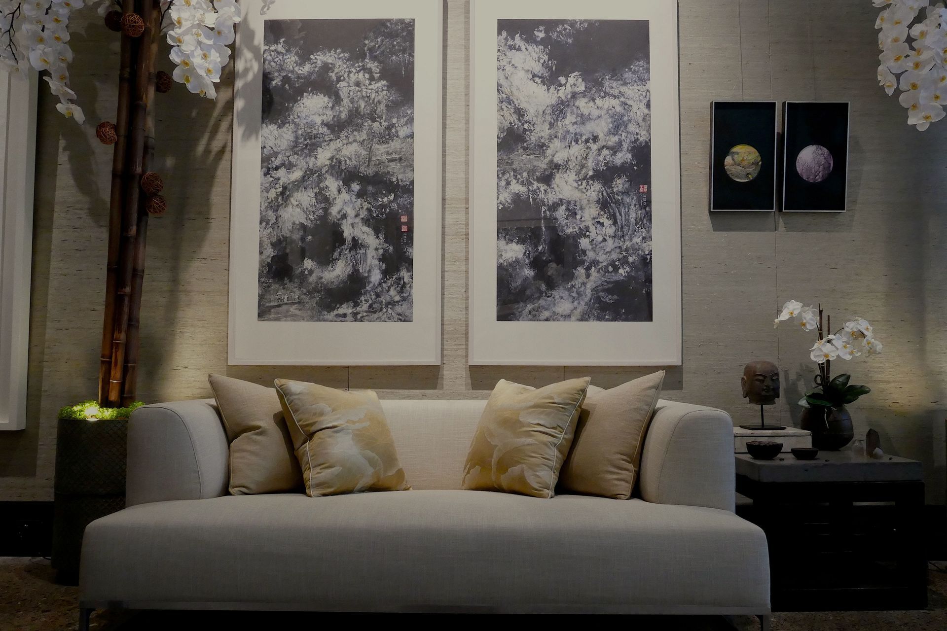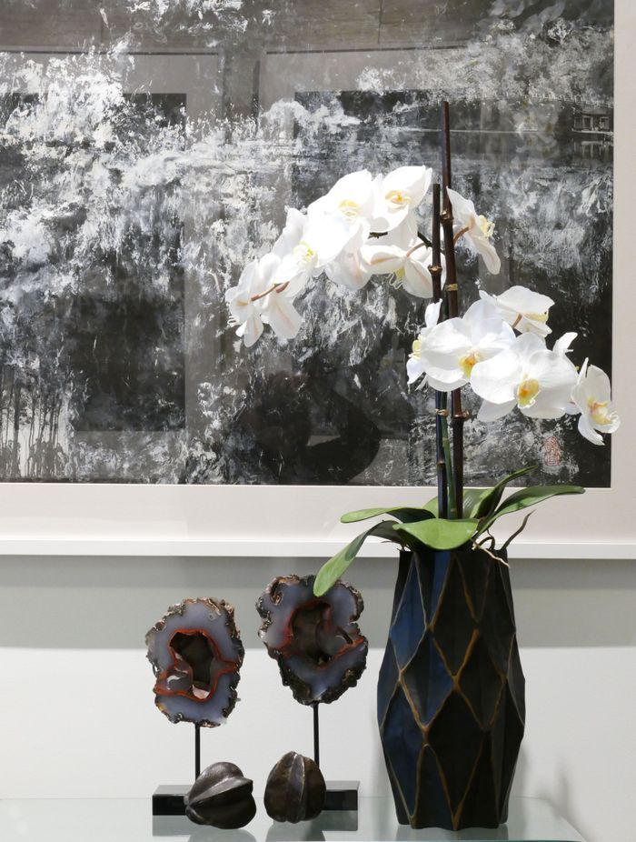 “At the studio, I’ve incorporated the art of one of Hong Kong’s foremost modern abstract ink painters, Nina Pryde, with curated objects including Burmese lacquerware, bronze and cast metal accessories and custom crystal objects.”