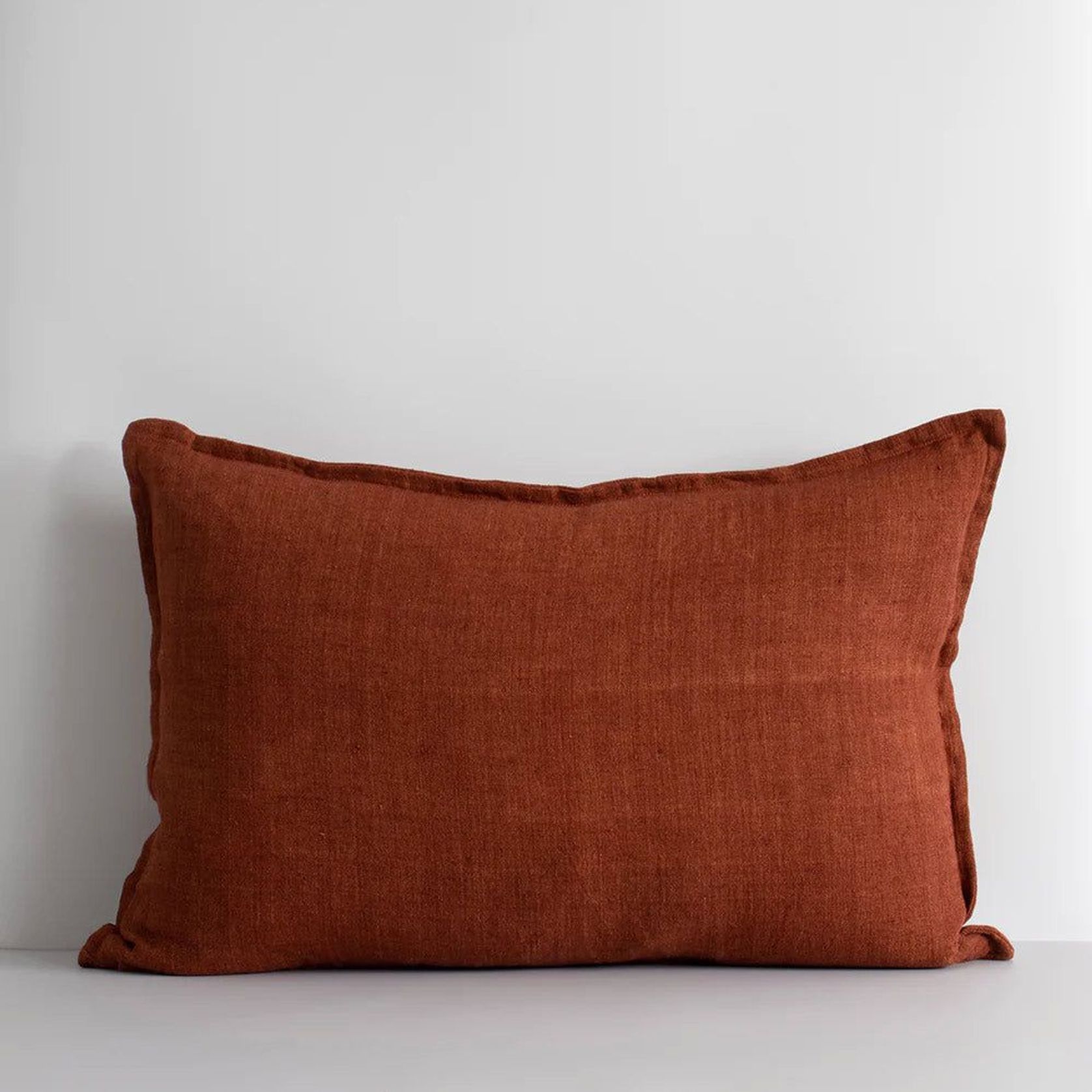 Baya Arcadia Handwoven Linen Cushion - Red Leather