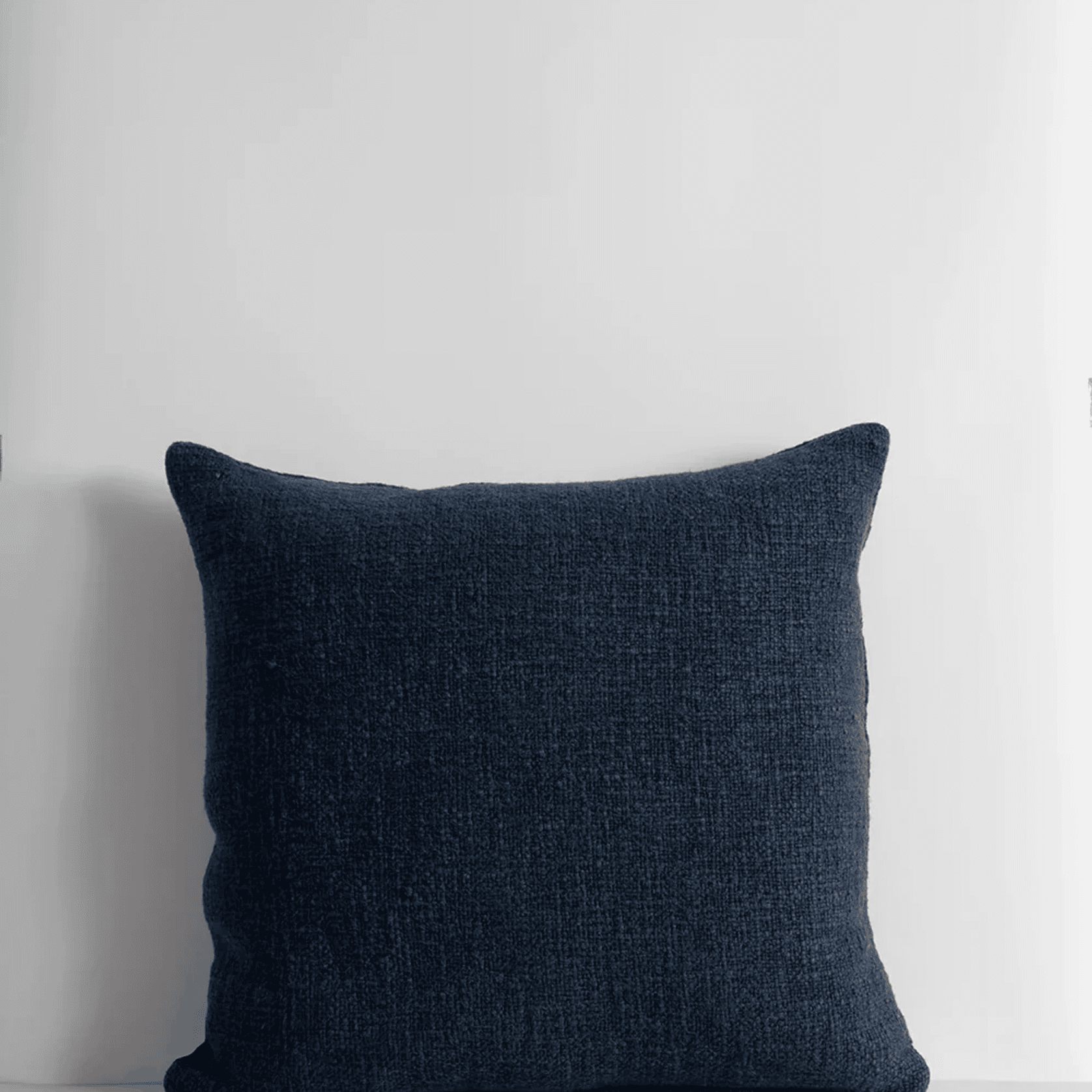 Engage your senses with the exceptional texture and soft lustre of the Cyprian. Thick, handwoven slub yarns offer an artisan aesthetic, while the deep, midnight tone creates a moody and contemporary space. The minimal design makes the Cyprian a versatile pairing cushion, or a beautiful feature when used on its own.