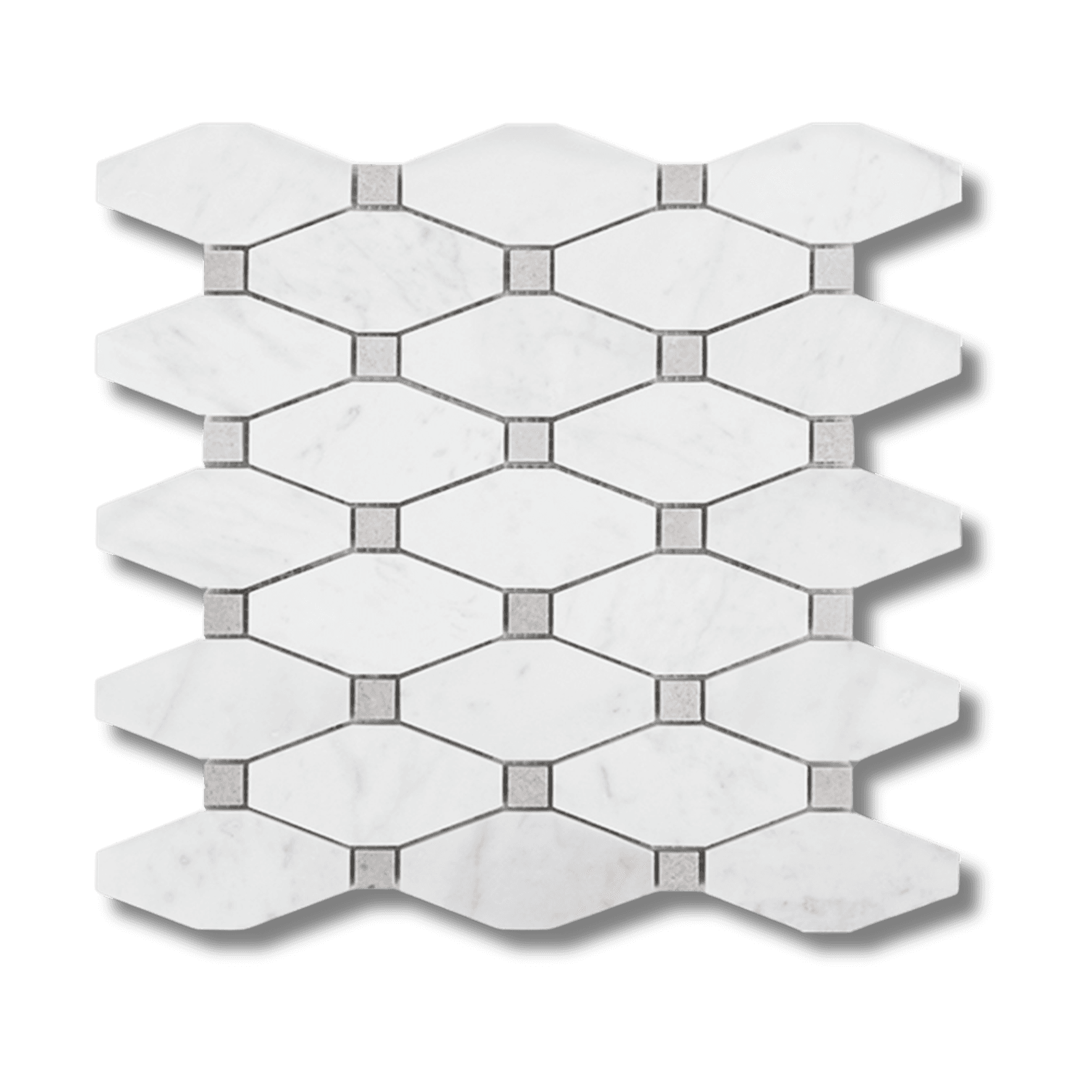 SKU: carrara-honed-long-octagon-mosaic-with-grey-dot