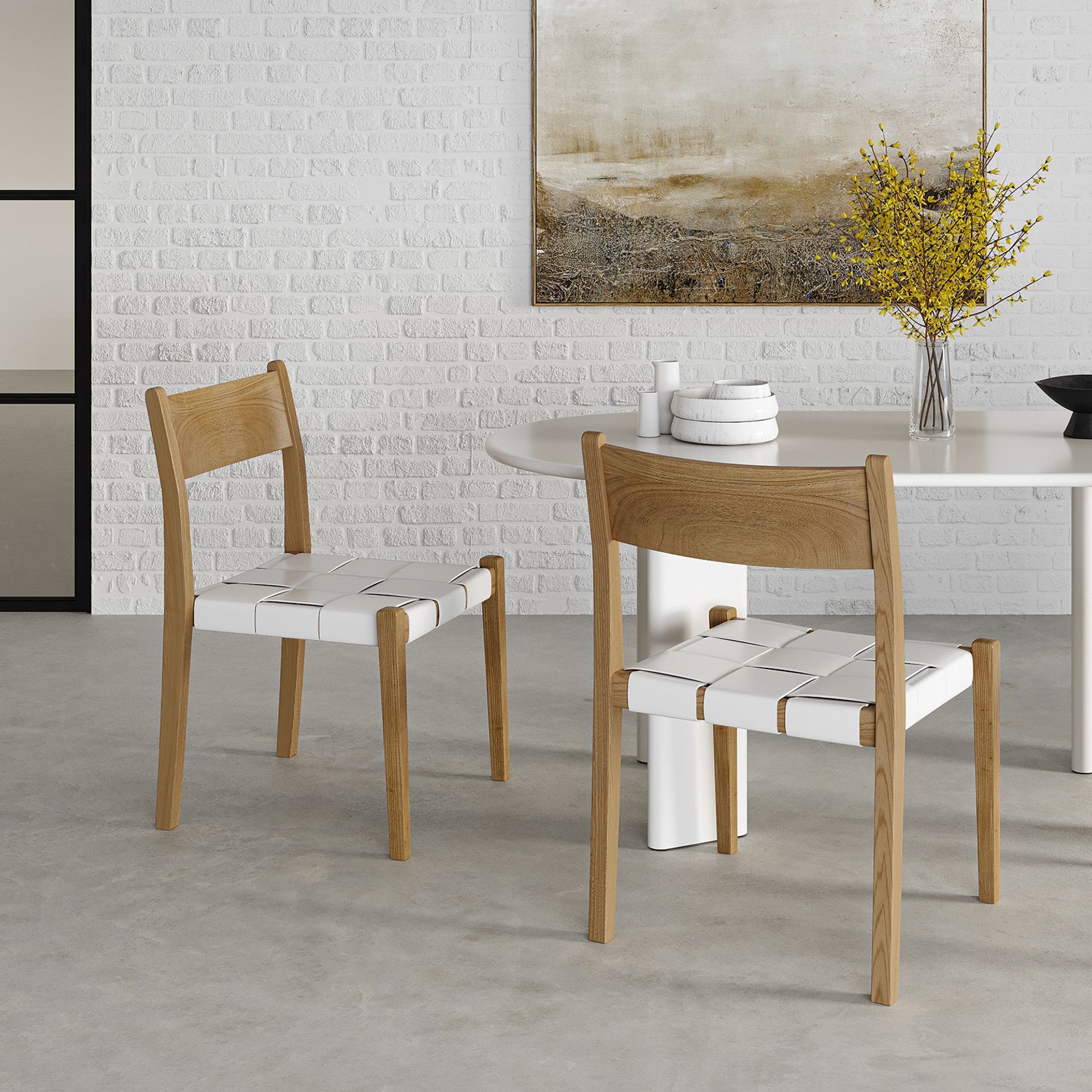 Laine Wide Leather Stackable Dining Chairs | Set of 2 | White