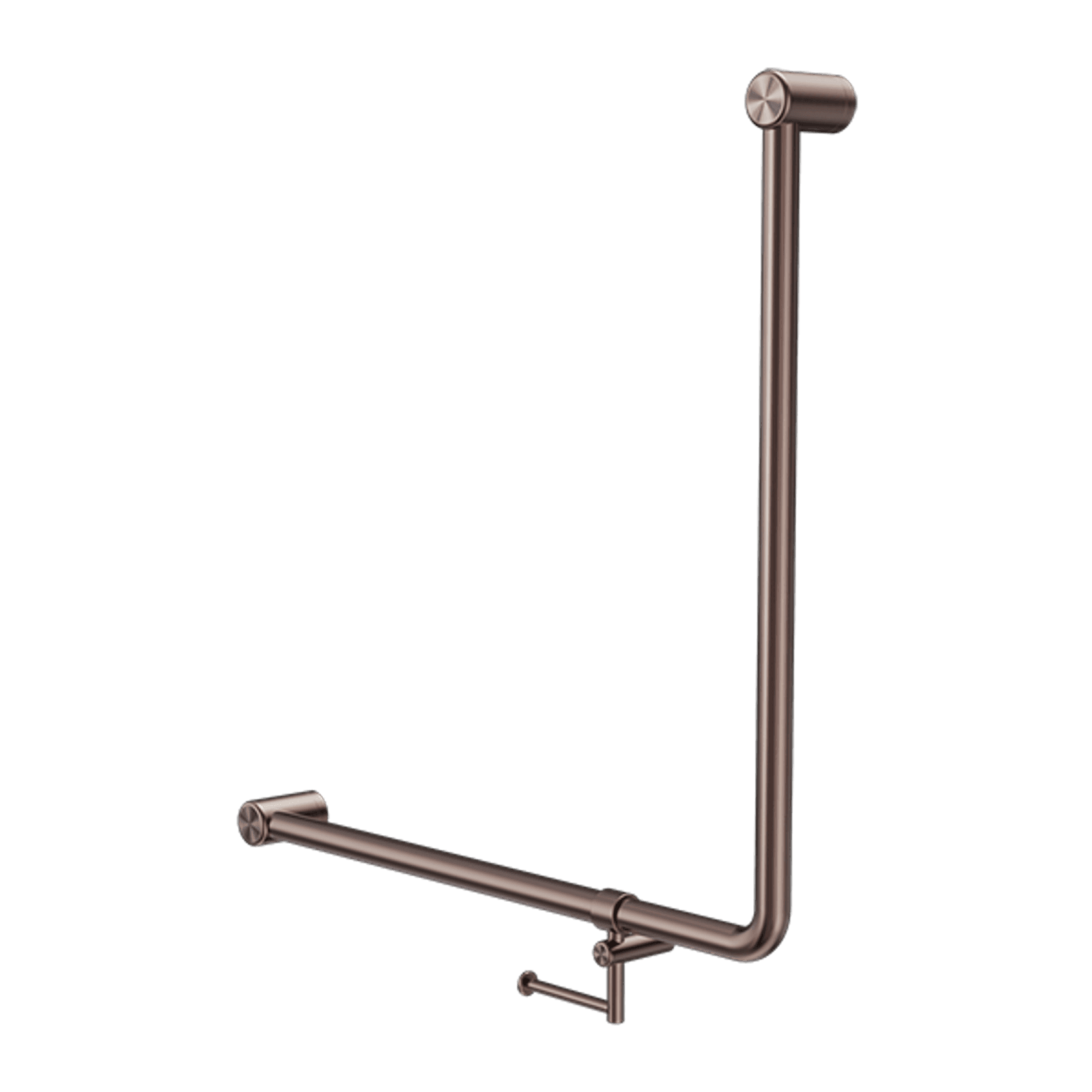 Mecca Care 32mm Ambulant 90 Degree Bent Tube Grab Rail 750X750mm With Toilet Roll Holder Brushed Bronze