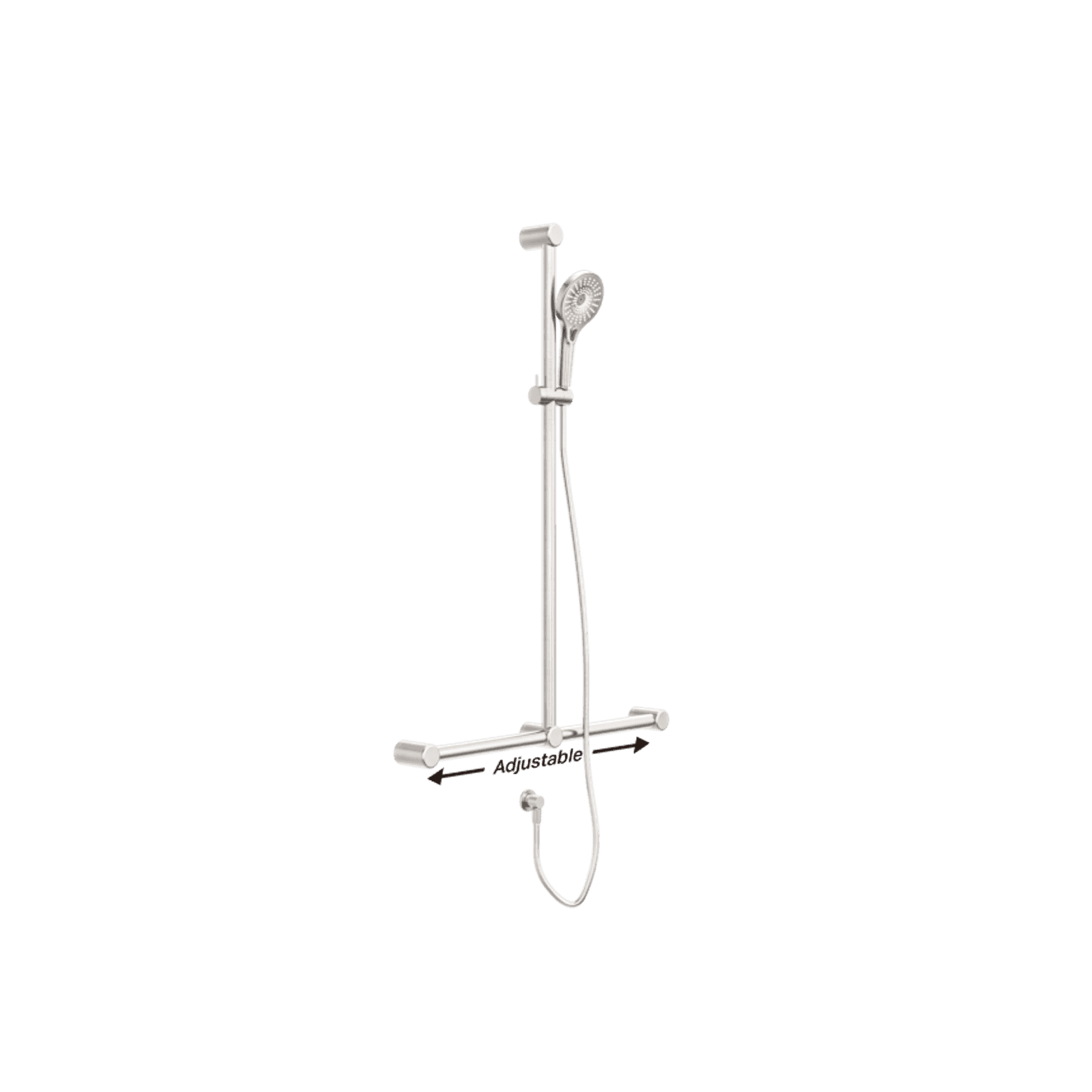 Mecca Care 32mm T Bar Grab Rail And Adjustable Shower Set 1100X750mm Brushed Nickel