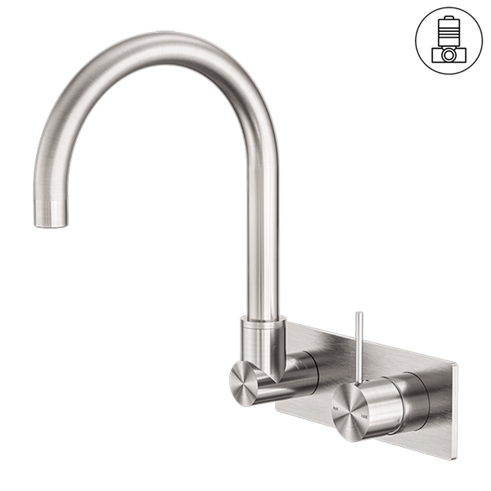 Mecca Wall Basin/Bath Mixer Swivel Spout Handle Up Brushed Nickel