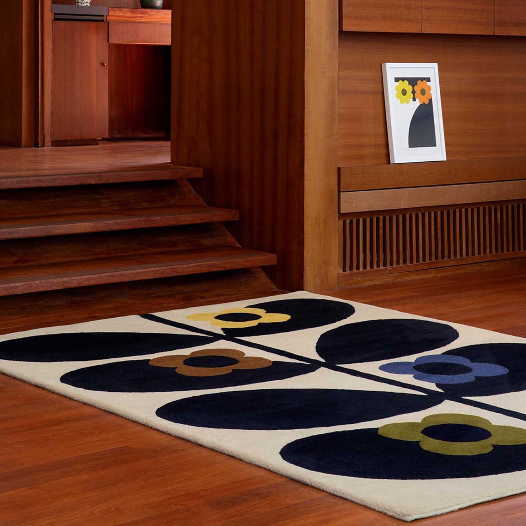 Orla Kiely Striped Wild Rose Rug - Fawn | 100% Wool Designer Floor Rug