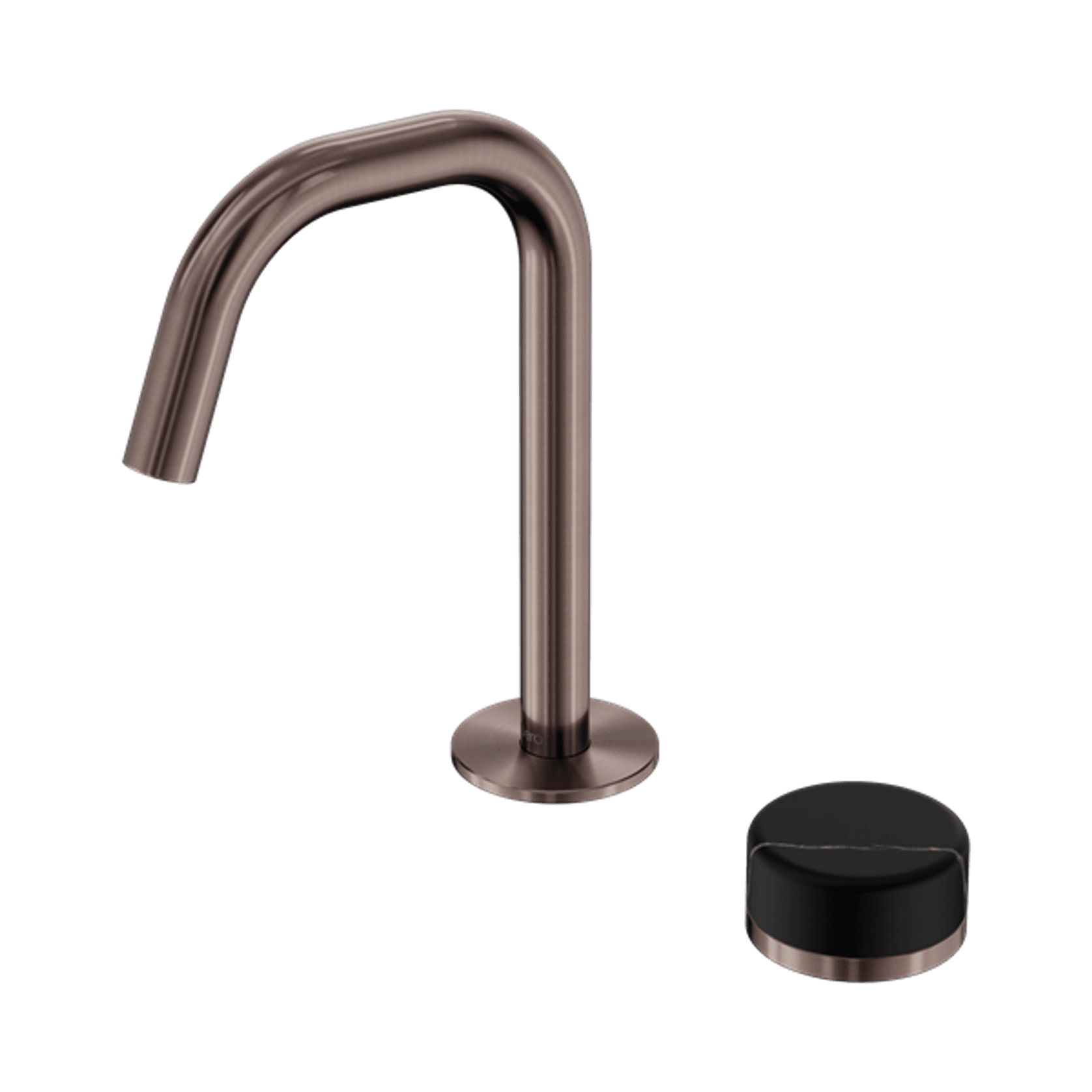 Serenity Basin Mixer Edge Spout Marquina Black Handle Brushed Bronze