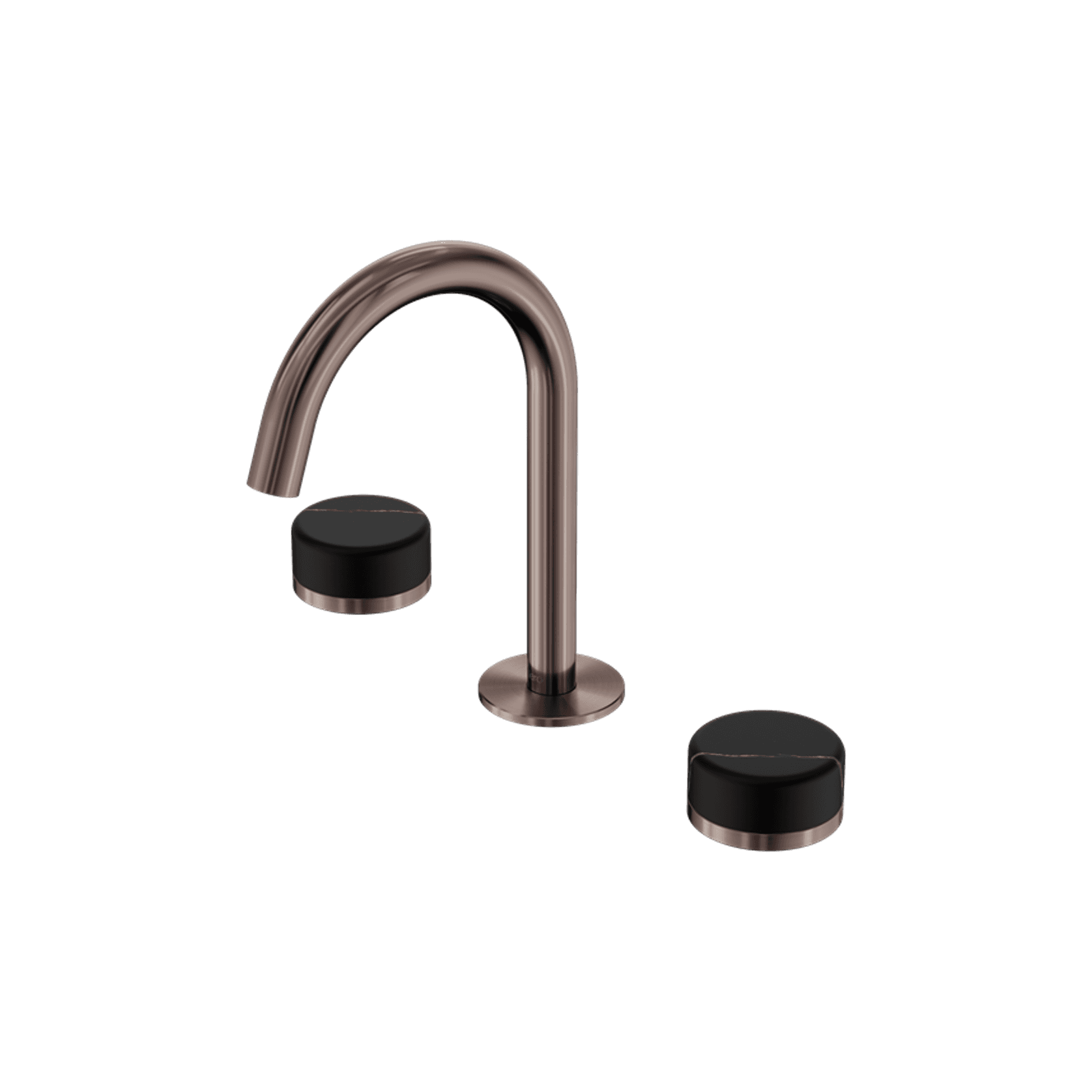 Serenity Basin Set Arc Spout With Marquina Black Handle Brushed Bronze