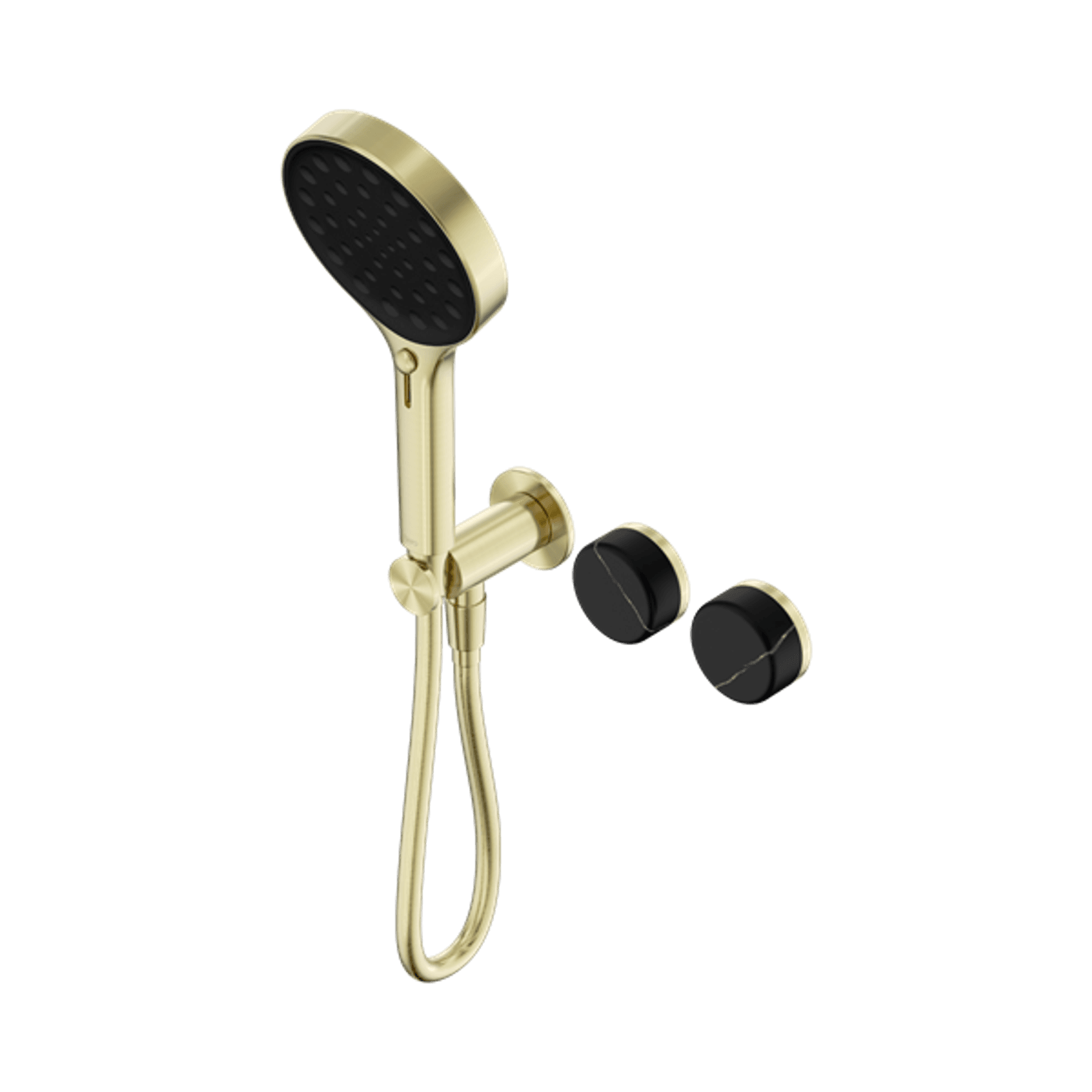 Serenity Shower System Marquina Black Handle And Serenity Hand Shower Brushed Gold
