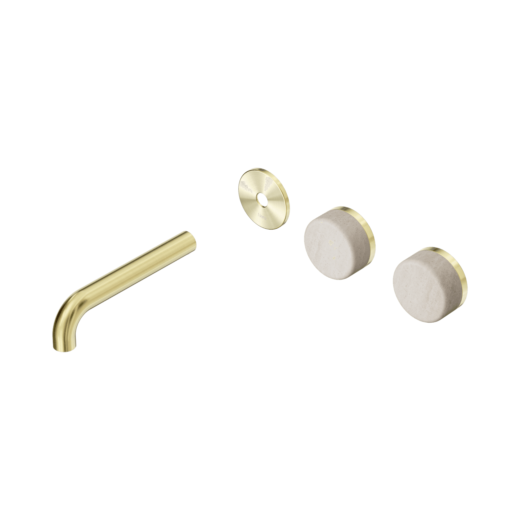 Serenity Wall Basin 160mm Offspout + Rome Travertine Handle Brushed Gold