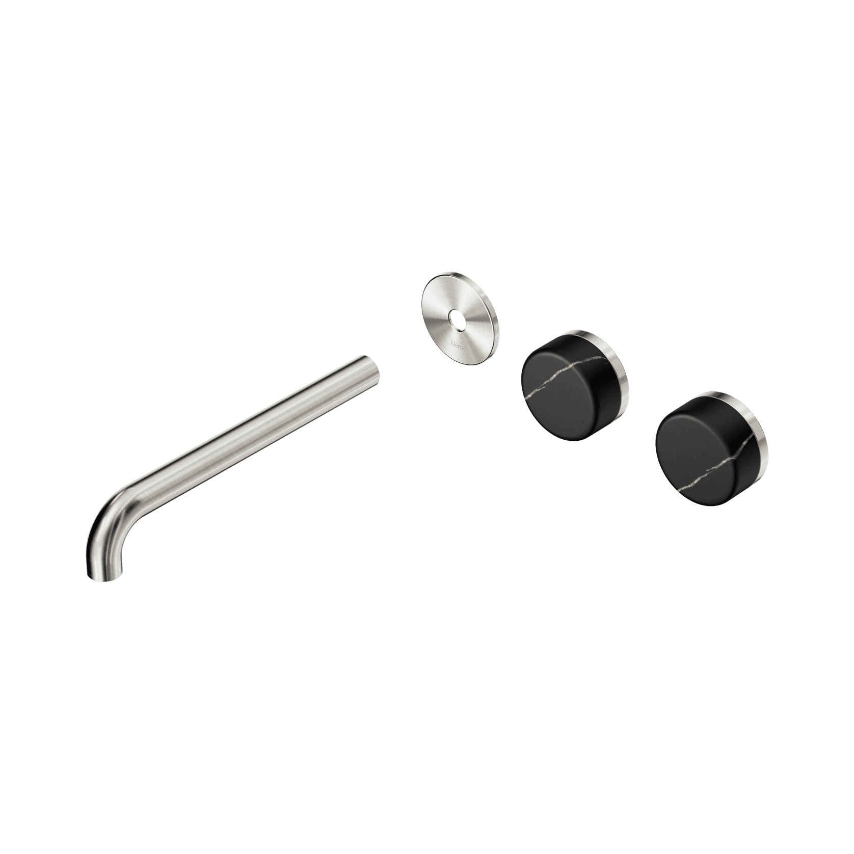 Serenity Wall Basin 220mm Offspout + Marquina Black Handle Brushed Nickel