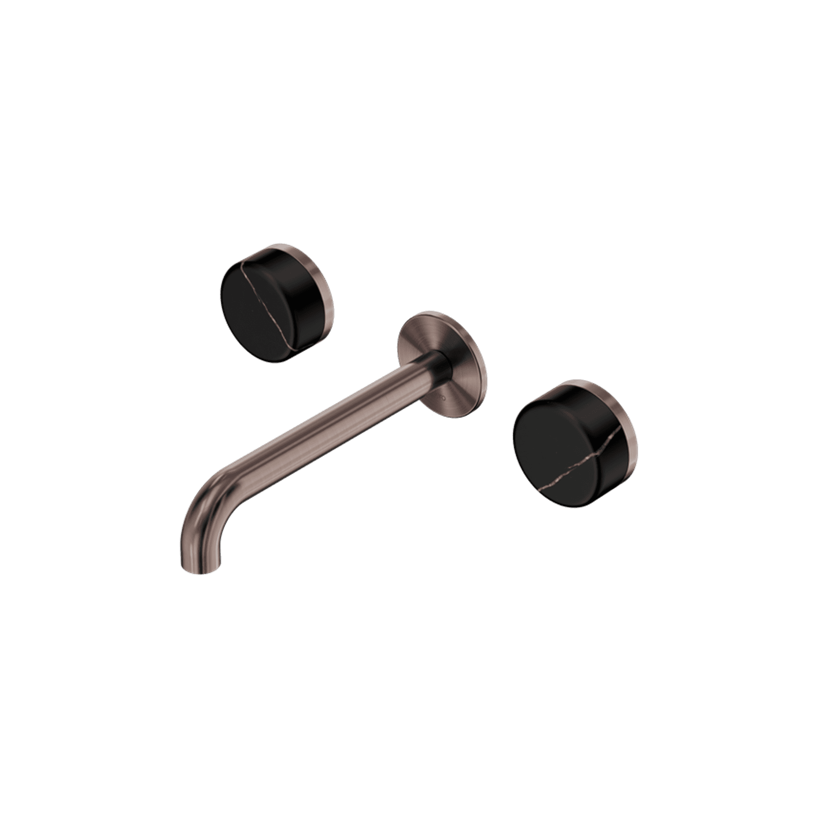 Serenity Wall Basin Set 220mm Spout With Marquina Black Handle Brushed Bronze