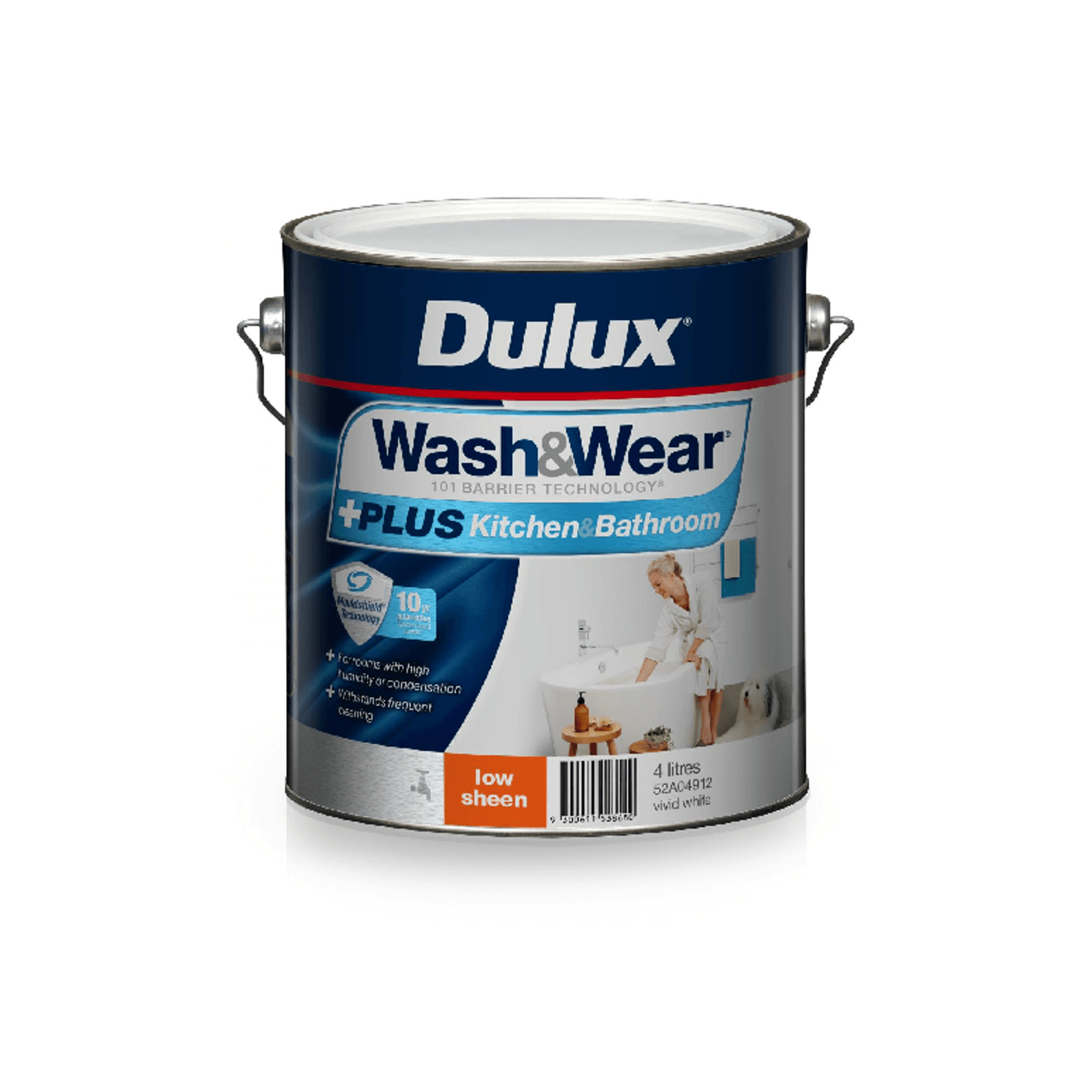 Wash&Wear+ Kitchen & Bathroom Low Sheen 4L by Dulux