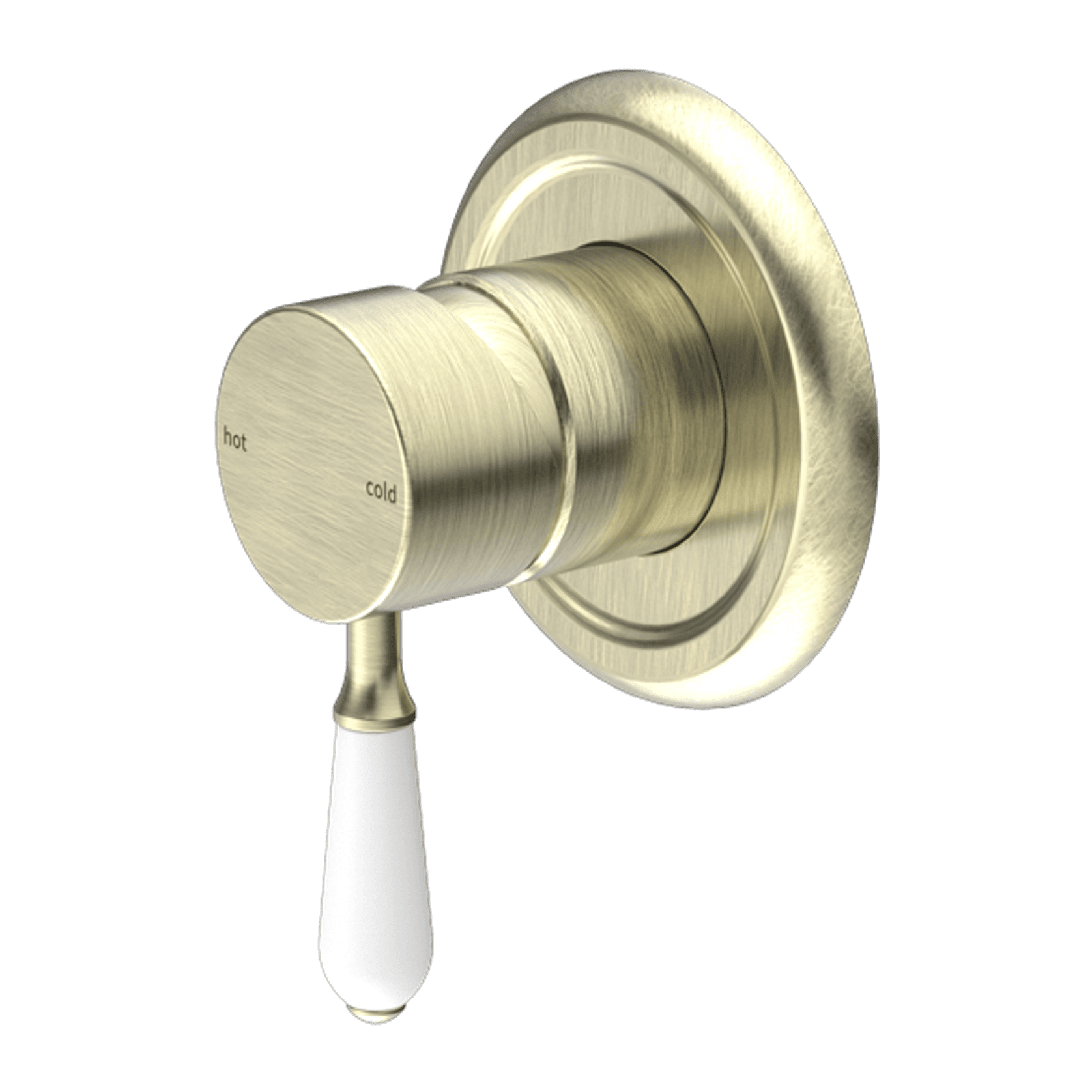 York Shower Mixer With White Porcelain Lever Aged Brass
