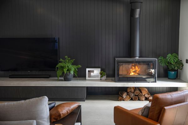 Eco-Friendly Hillside Retreat x Sculpt Fireplace Collection