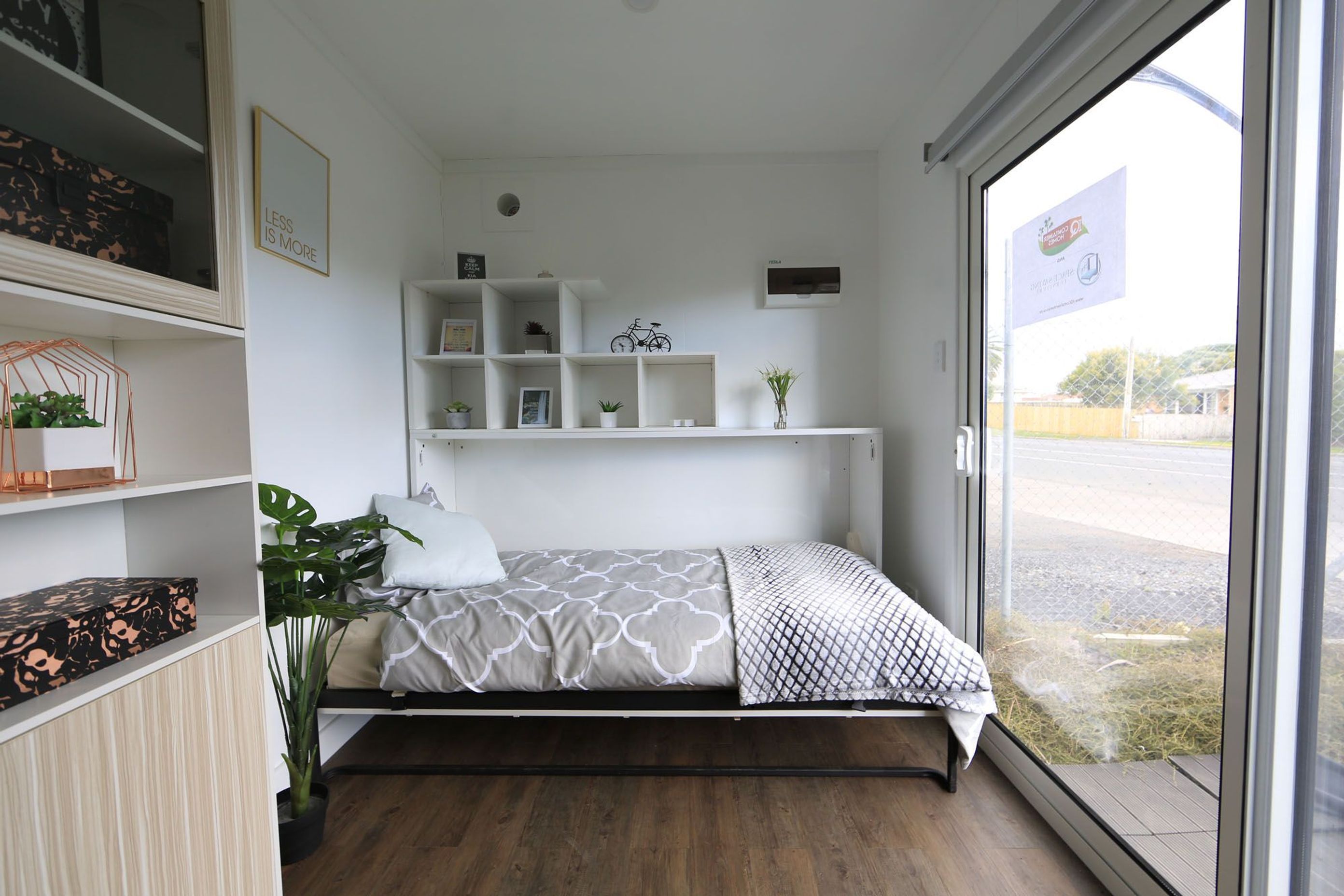 ArchiPro Project Summary - Innovative Container Sleepout in Auckland, featuring custom-sized, fully lined units with dual-purpose furniture, designed for versatility as a guest space or office, completed in 2017 by IQ Container Homes Ltd.