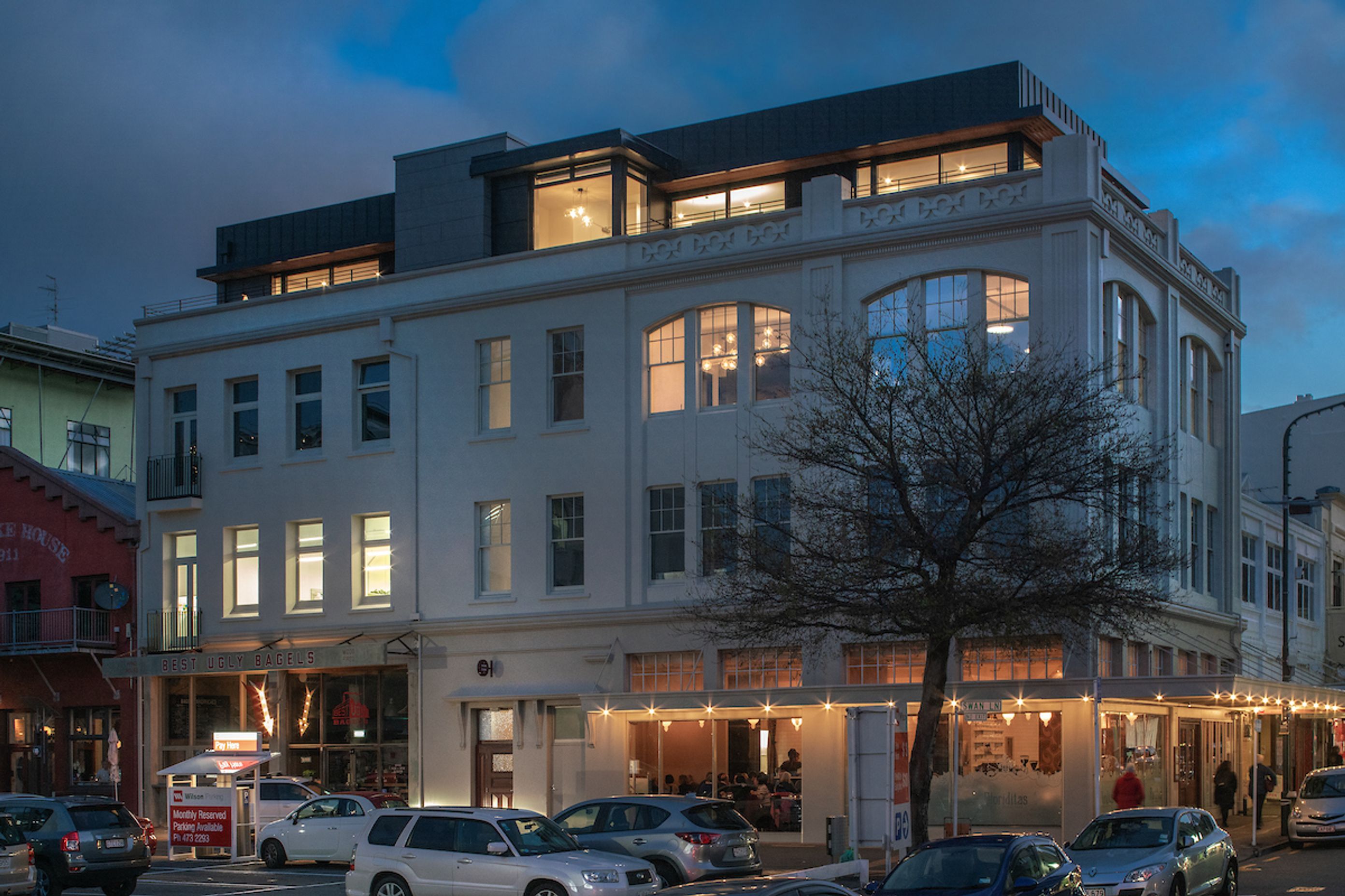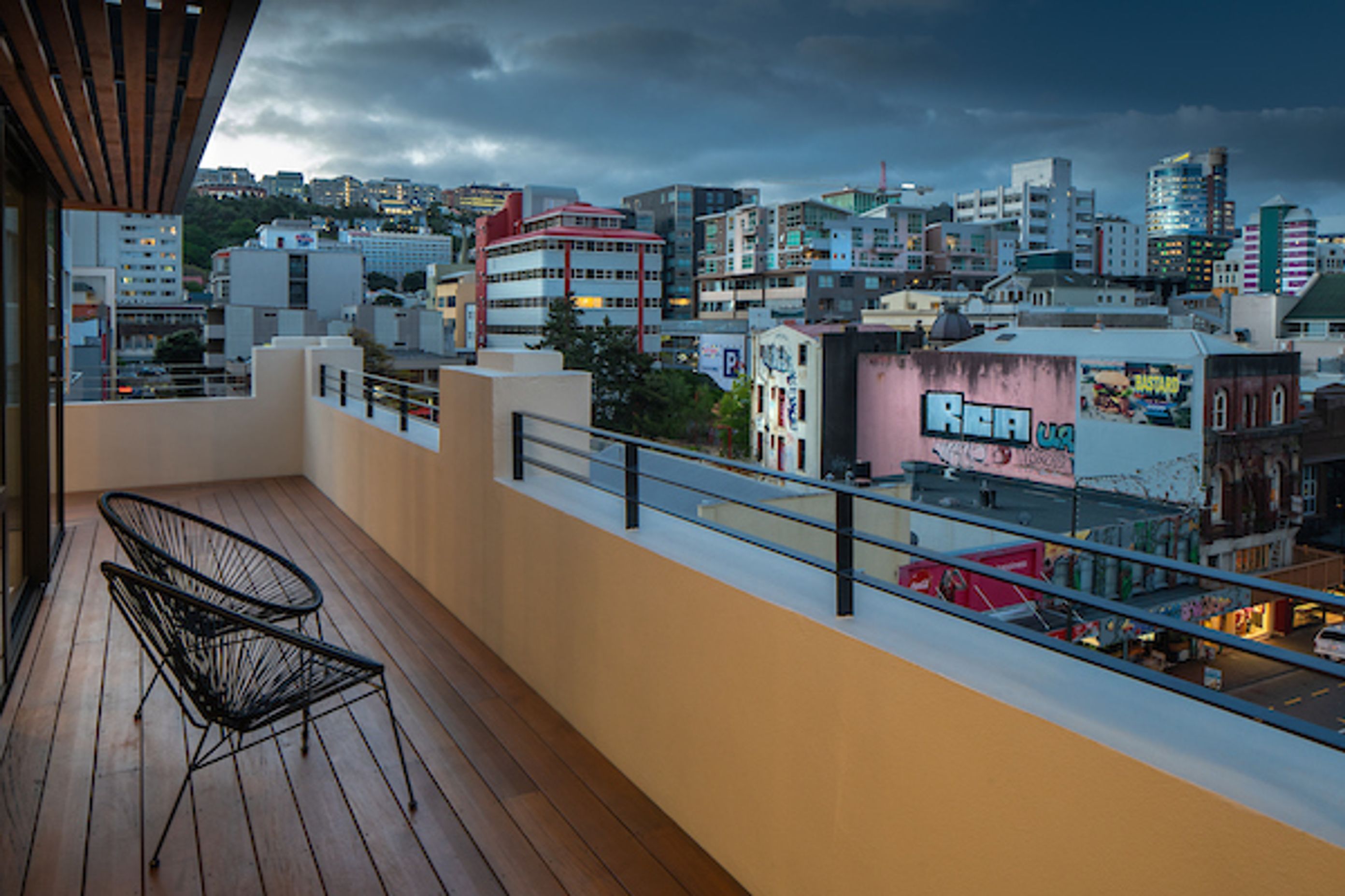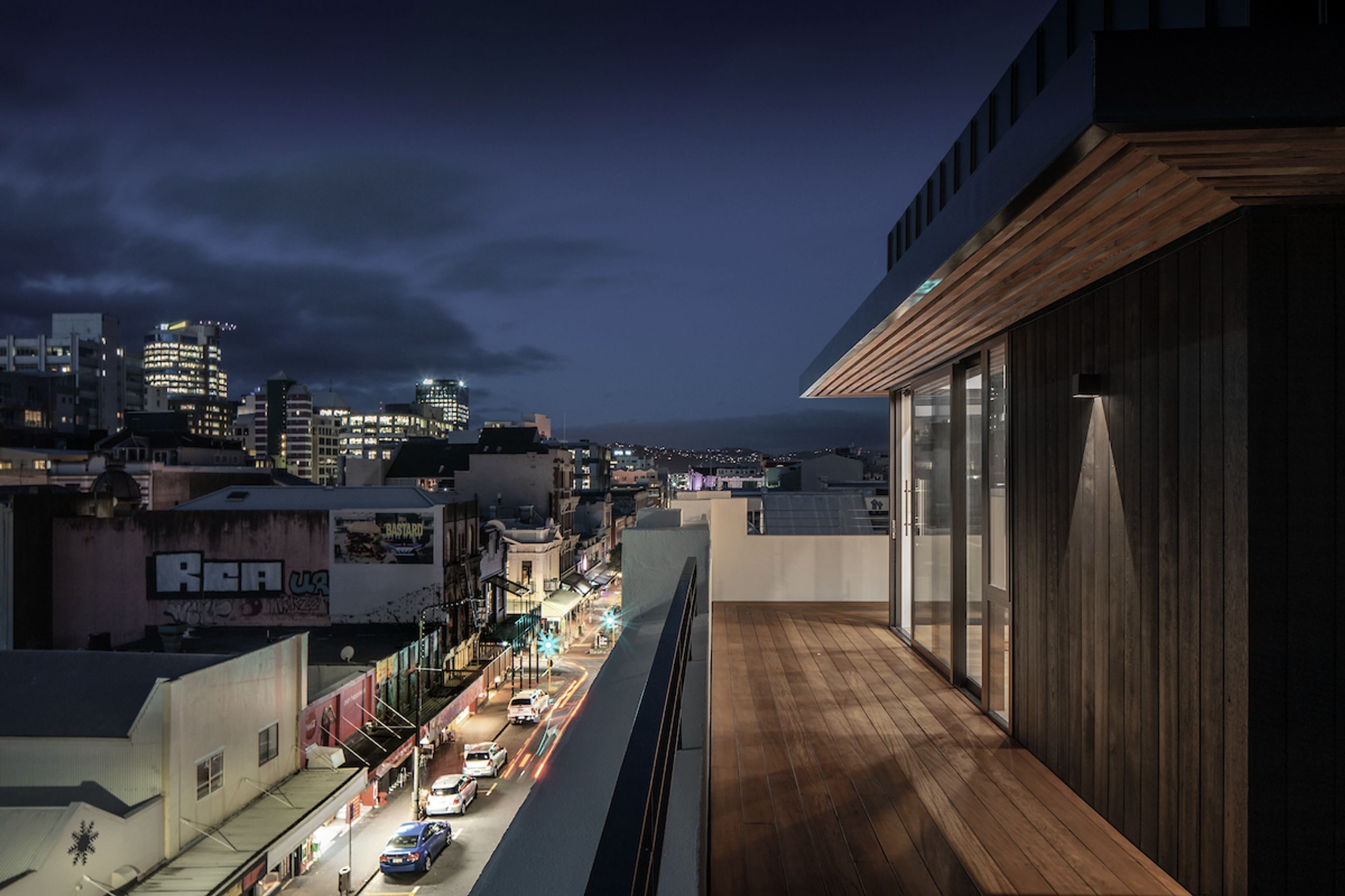 ArchiPro Project Summary - Two light-filled penthouse apartments on Cuba Street, featuring innovative design solutions that respect heritage requirements while maximizing space, privacy, and stunning views.