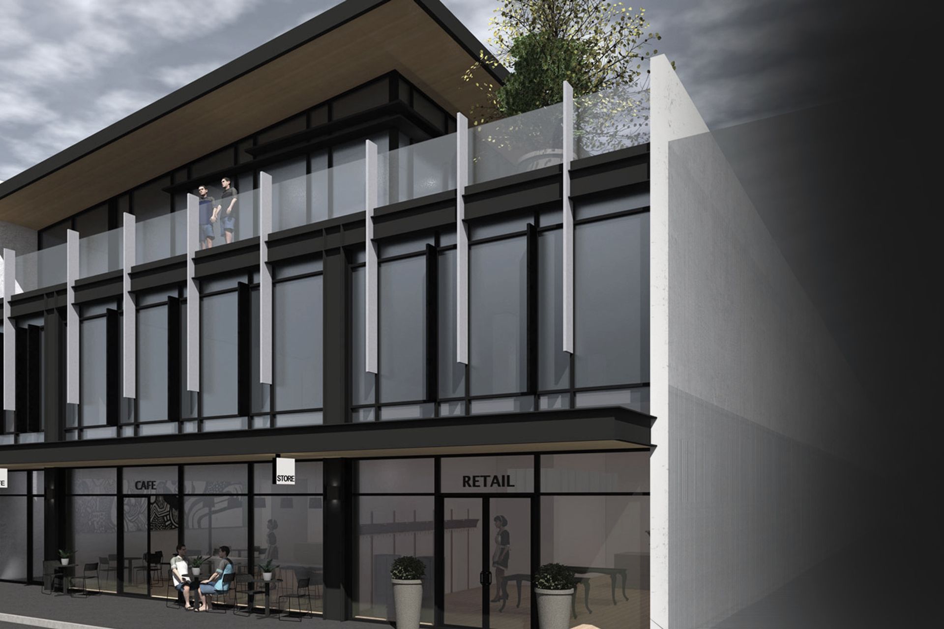 ArchiPro Project Summary - Proposed new commercial building in central Christchurch featuring expansive deck space on the top floor, designed for penthouse office or apartment use, replacing a structure lost to the Christchurch earthquakes.