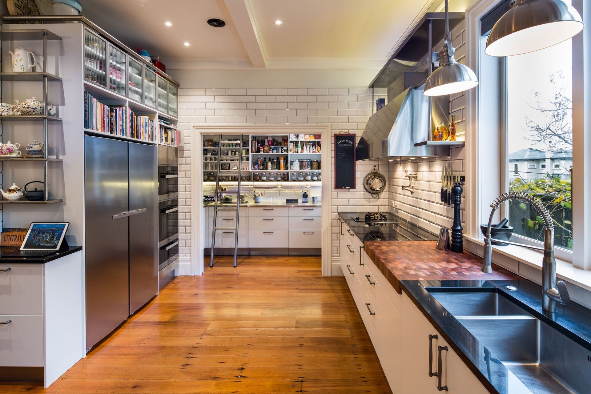 ArchiPro Project Summary - Transforming a 1980s kitchen into a 1920's New York City deli-style light industrial kitchen, featuring a functional layout for professional catering, custom-designed elements, and a blend of industrial and vintage aesthetics.