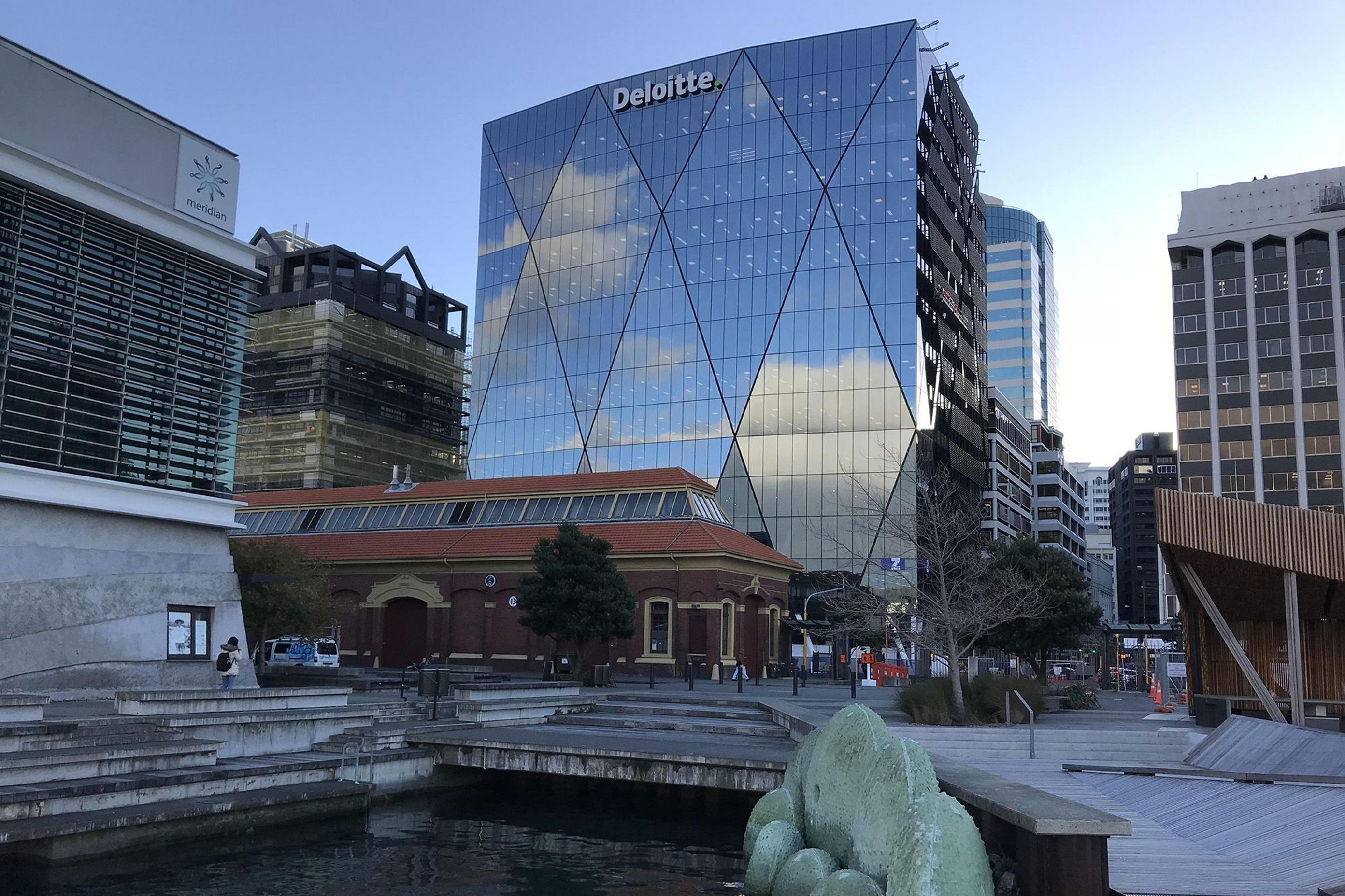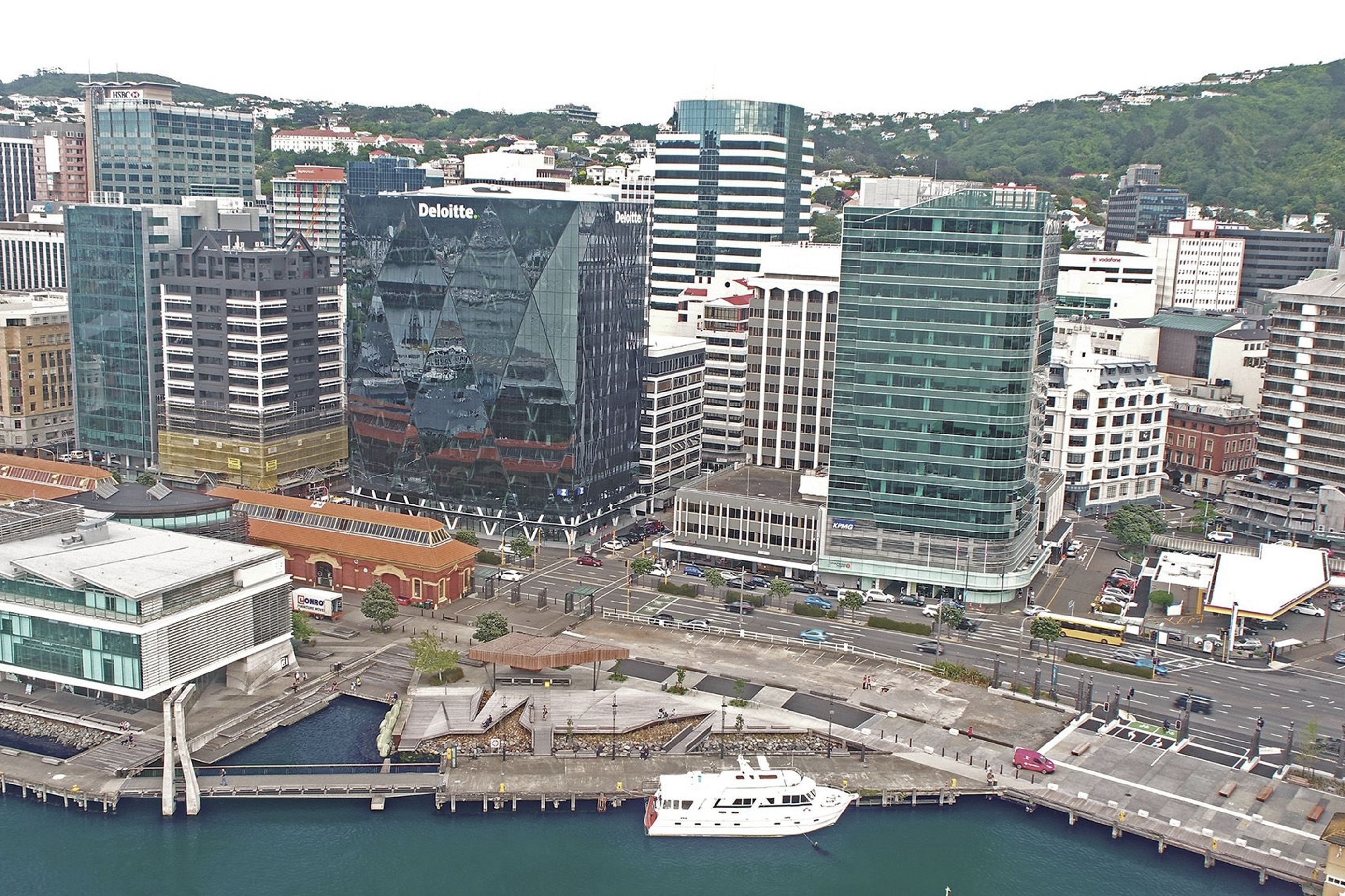 ArchiPro Project Summary - 20 Customhouse Quay: A 17,500sqm multi-storey office development in central Wellington, featuring advanced seismic design, floor-to-ceiling glazing, and a 5 Star Green Star rating, accommodating diverse uses including hospitality, retail, and office space.