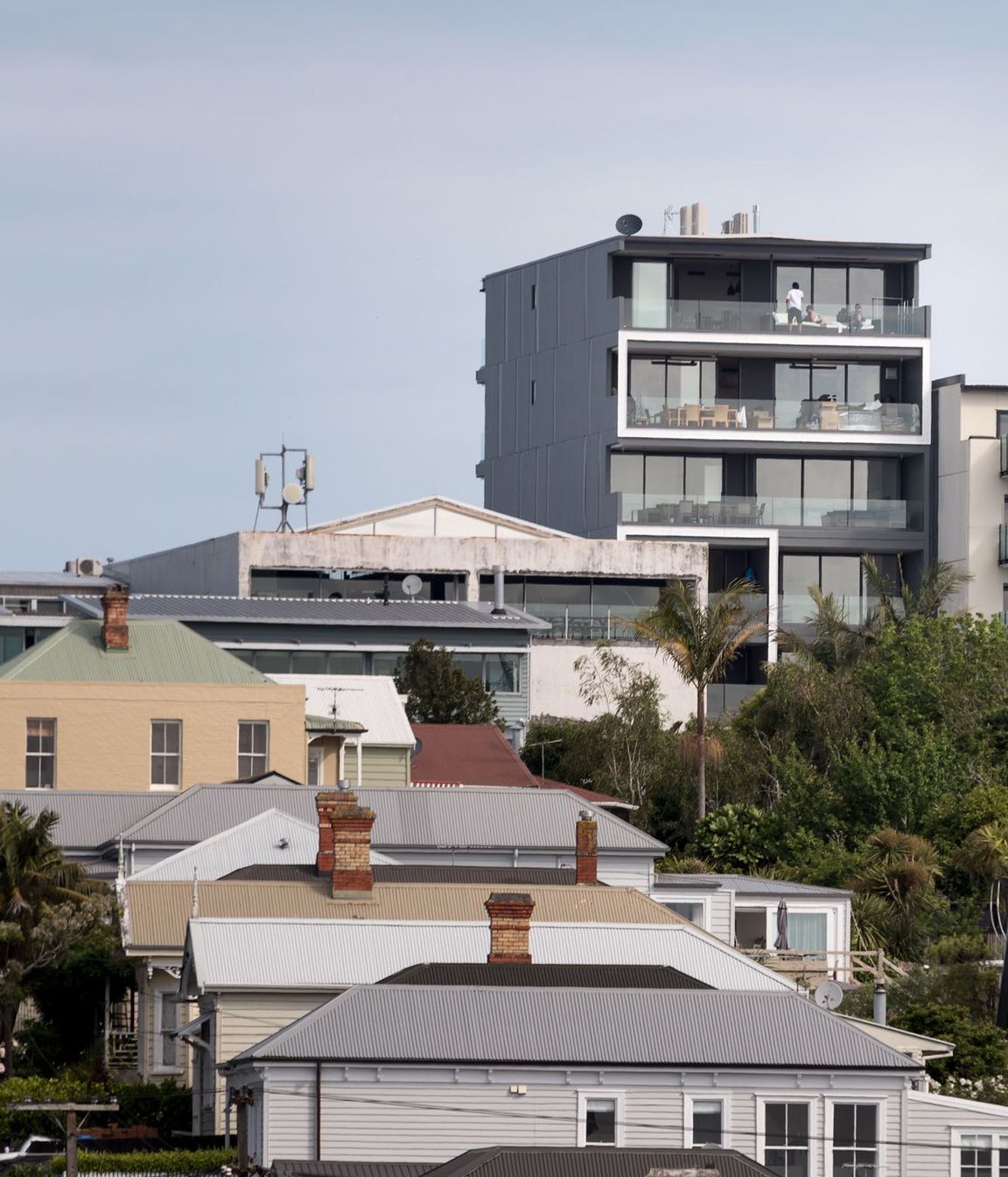 ArchiPro Project Summary - A sophisticated urban building nestled in a narrow canyon, featuring a striking exterior and thoughtfully designed apartments that balance public and private spaces while maximizing stunning views.